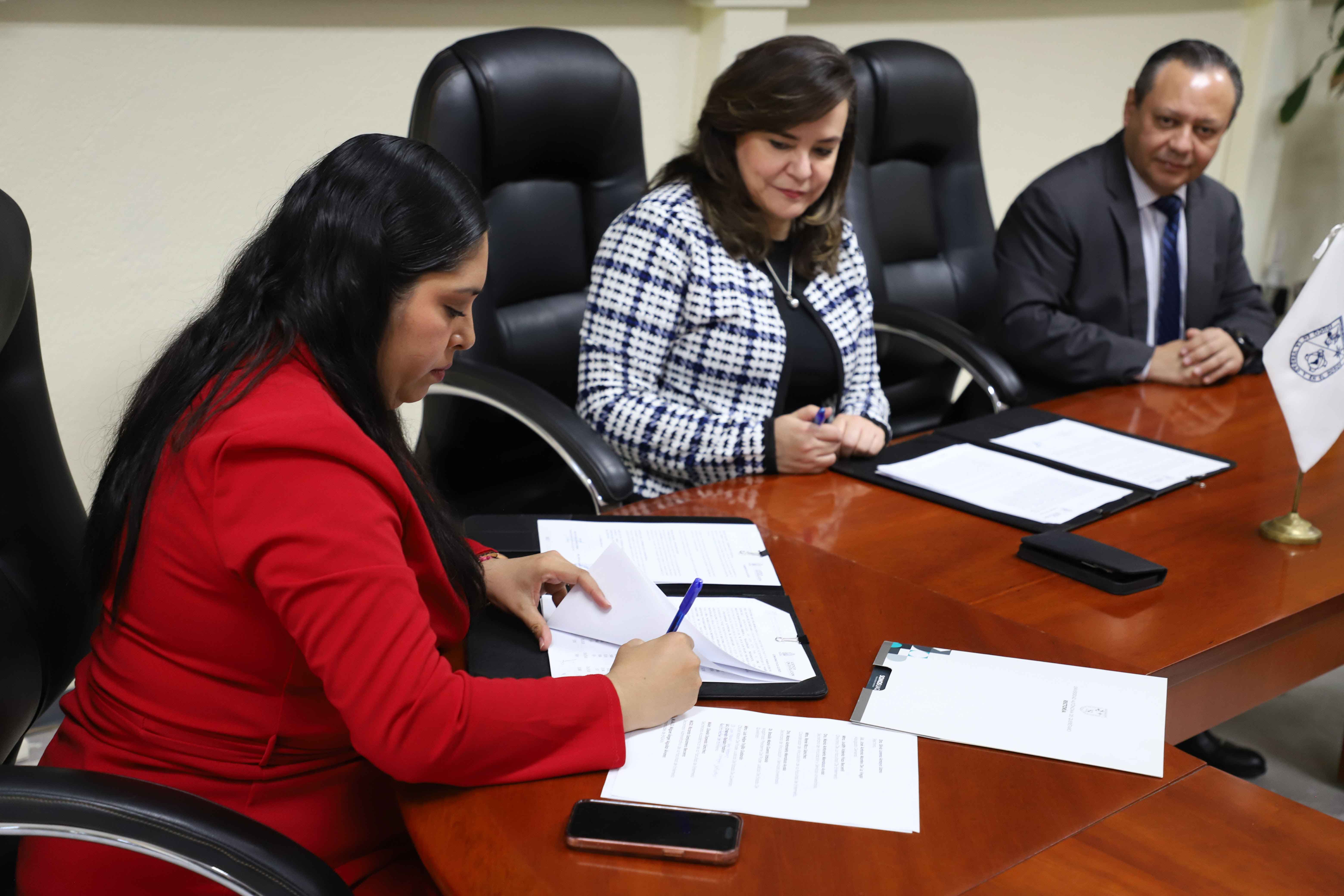 La Universidad Autónoma de Querétaro (UAQ), a través de la Facultad de Enfermería (FEn), llevará los servicios del programa Enfermería en Salud Integral (Ensain) a las y los colaboradores del Tribunal Superior de Justicia del estado (TSJ), así como al público que asiste a la Ciudad Judicial. Este acuerdo fue formalizado por la rectora de la UAQ, Dra. Silvia Amaya Llano; la directora de la FEn, Mtra. Judith Valeria Frías Becerril; y el magistrado presidente del Poder Judicial, Dr. Braulio Guerra Urbiola.