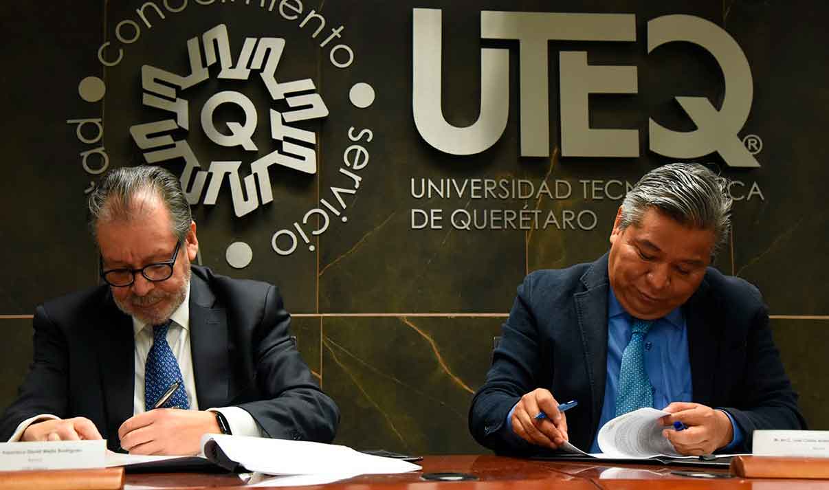 El rector de la Universidad Tecnológica de Querétaro (UTEQ), José Carlos Arredondo Velázquez, y el rector de la Universidad Internacional de La Rioja (UNIR) México, Francisco David Mejía Rodríguez, encabezaron la firma de convenio de colaboración PARA fortalecer el intercambio académico entre ambas instituciones, así como la promoción de programas educativos e investigación.