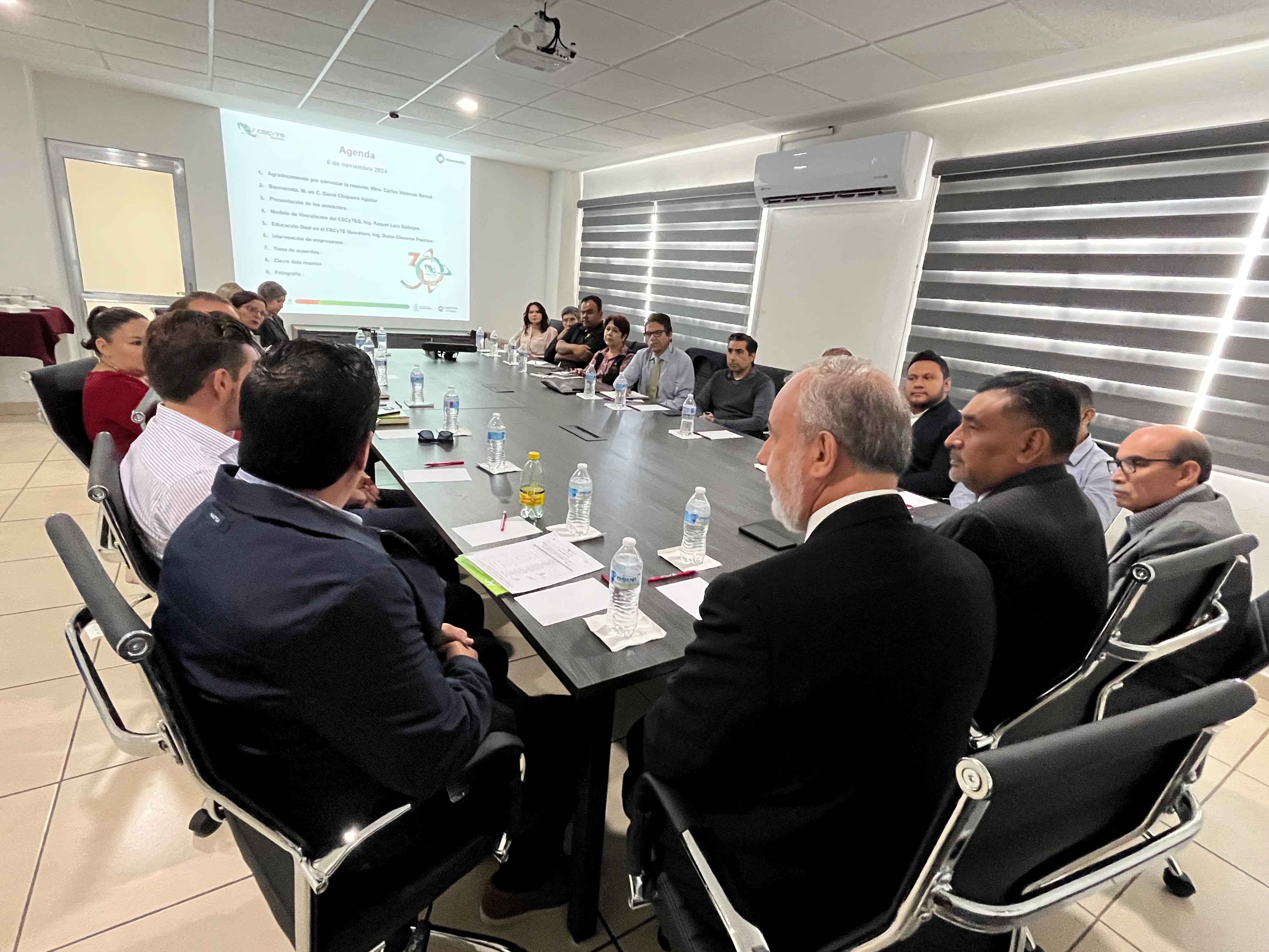 El director general del Colegio de Estudios Científicos y Tecnológicos del Estado de Querétaro (CECyTEQ), David Chaparro Aguilar, encabezó un encuentro con empresarios del sector industrial y productivo de la región. El objetivo fue presentar el Modelo Educativo de la institución y sus principales atributos.