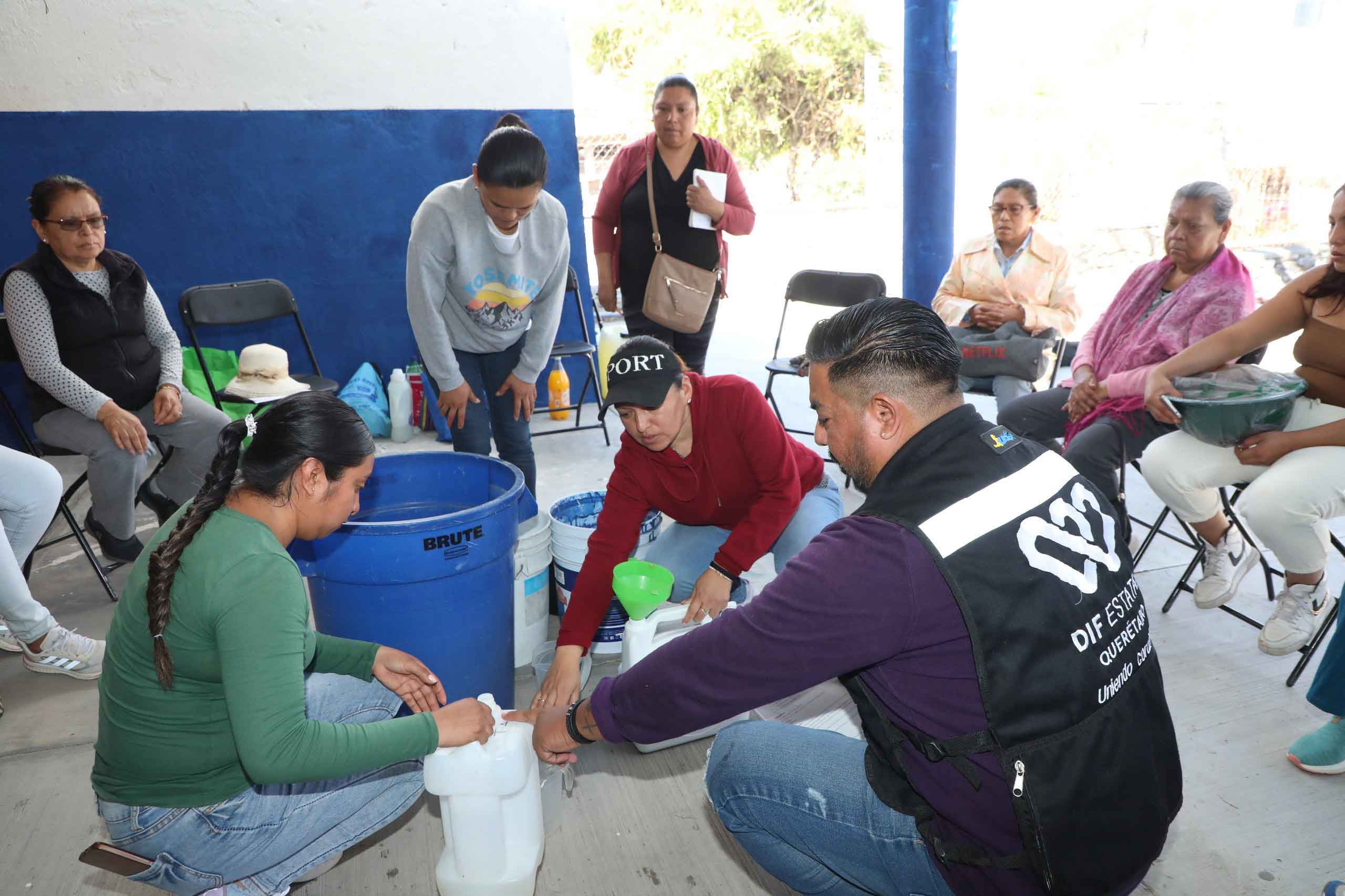 Con el objetivo de impulsar el desarrollo de las y los habitantes de las comunidades de alta y muy alta marginación, autoridades del Sistema Estatal DIF convocaron a las y los integrantes de los grupos de desarrollo comunitario de Ajuchitlancito de Pedro Escobedo, y de la Solana en el municipio de Querétaro, para recibir capacitación por medio de un taller enfocado en la elaboración de productos de limpieza.