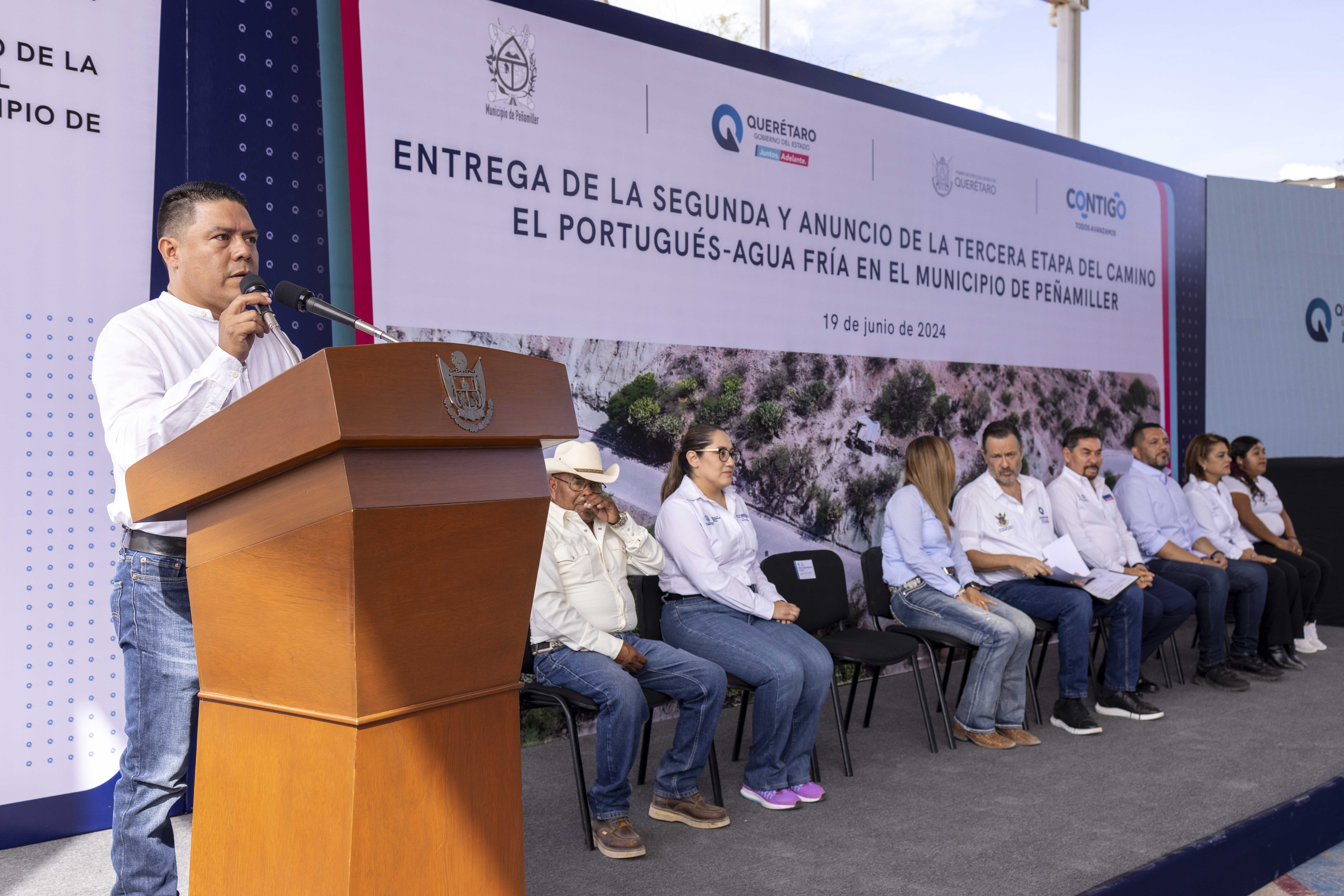 El gobernador, Mauricio Kuri González, encabezó la entrega de la segunda etapa del Camino El Portugués – Agua Fría en Peñamiller. Obra que representó una inversión de 5.2 millones de pesos y que beneficia a cerca de cinco mil habitantes de la región; de igual manera, anunció los trabajos de la tercera etapa con recursos por 7.3 millones de pesos.
