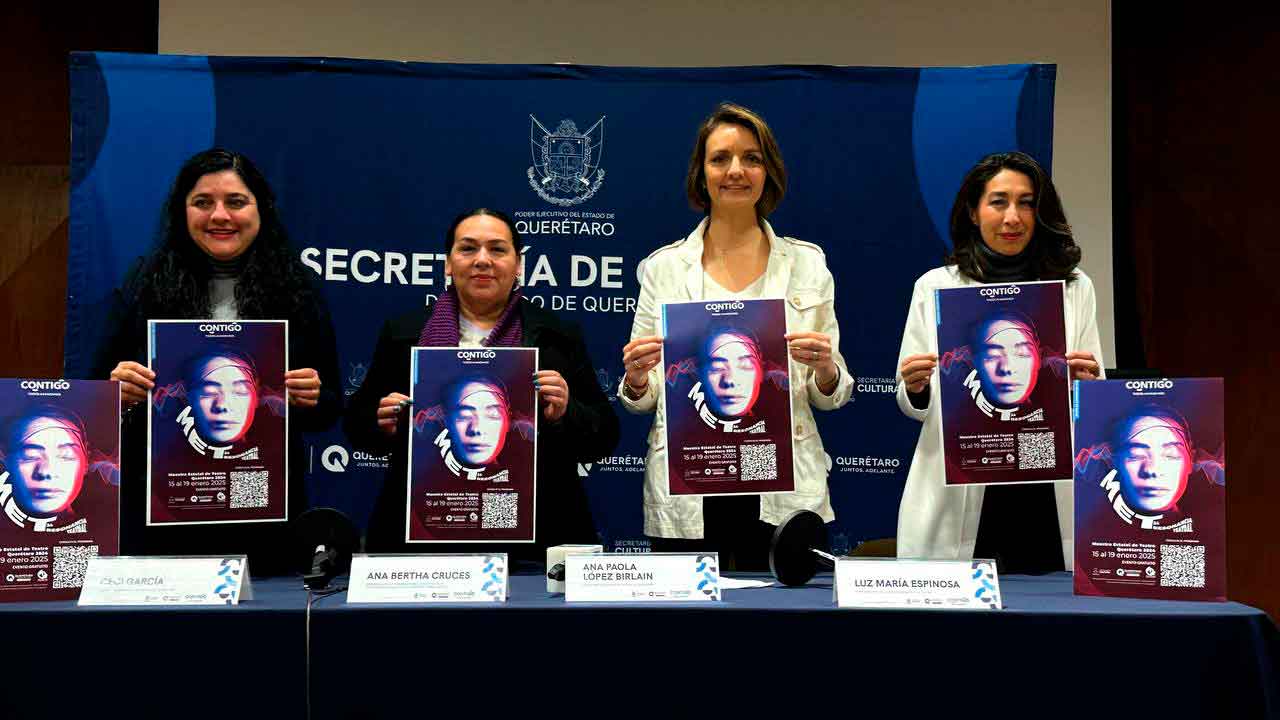 La Secretaría de Cultura del Estado (SECULT), encabezada por Ana Paola López Birlain, presentó la Muestra Estatal de Teatro (MET) 2024, que se llevará a cabo del 15 al 19 de enero con la participación de 133 artistas en 19 presentaciones en siete recintos públicos y privados de Querétaro.