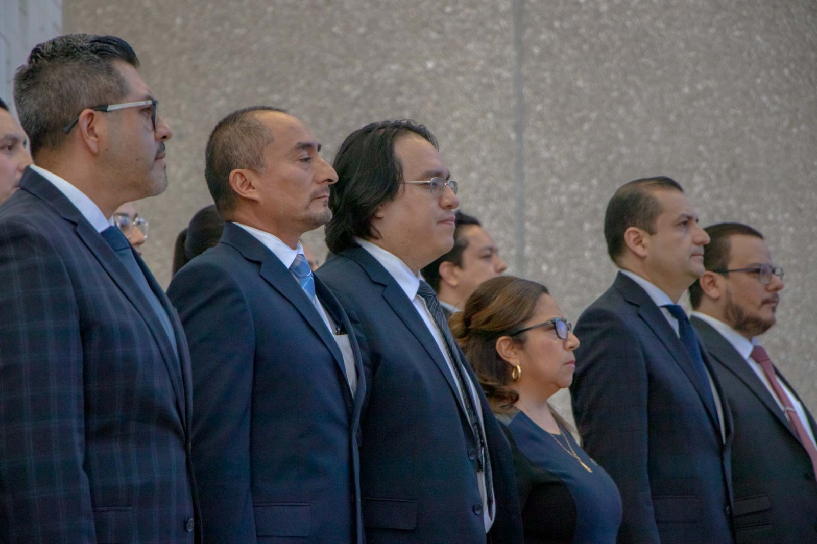 En la explanada del Edificio Central, el Fiscal General del Estado de Querétaro, Víctor Antonio De Jesús Hernández, encabezó la presentación de mandos ante la institución, reafirmando su compromiso de continuar con el trabajo institucional bajo su liderazgo. Durante el evento, representantes de más de mil 600 integrantes de la Fiscalía, entre ellos 6 mujeres y 3 hombres, expusieron un reporte sobre el estado de las áreas operativas y administrativas.