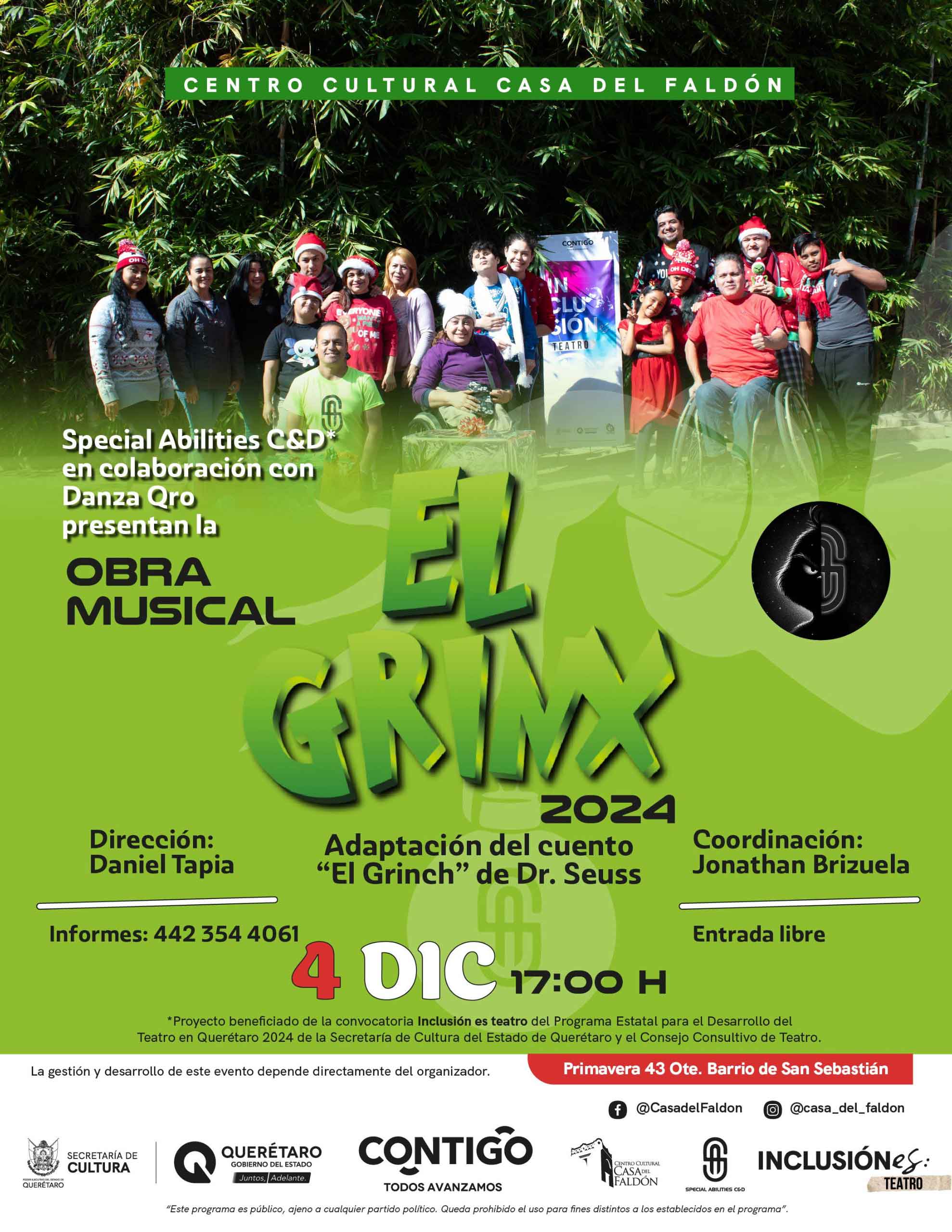 Cheer Abilities participó en la convocatoria de InclusiónEs: Teatro con una propuesta para llevar a cabo una capacitación y formación para impartir los pormenores de un montaje escénico, con la adaptación de El Grinch a El Grinx, con x, porque también se abordan temas de la comunidad LGBT para personas con discapacidad.