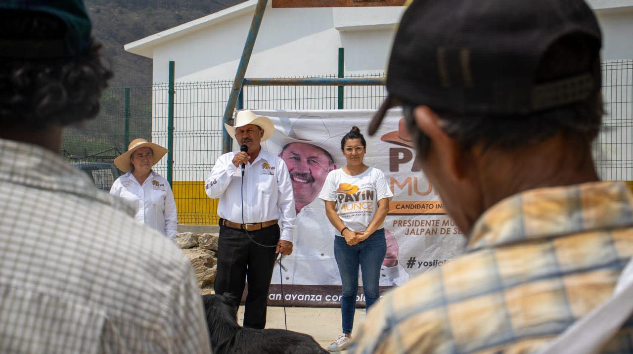 Acompañado de su esposa Olga Leal Zamorano, el candidato independiente Payín Muñoz, visitó la comunidad de Ojo de Agua de Lindero en donde expuso si proyecto, con el que piensa dar continuidad a su trabajo y desarrollar proyectos de alto impacto para Jalpan.