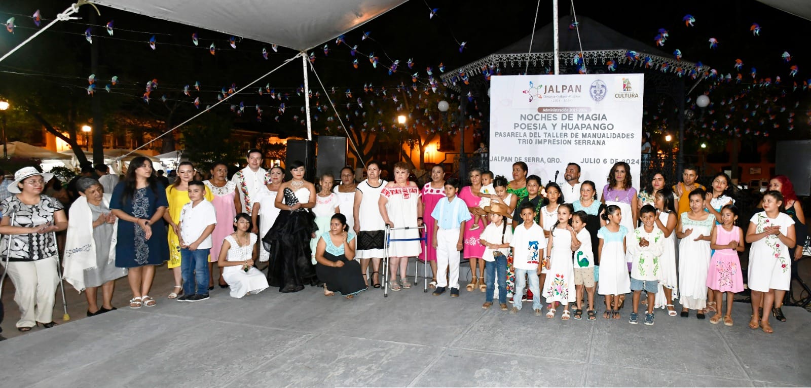 La noche de ayer, el jardín principal de Jalpan fue escenario de una animada velada huapanguera, parte del programa “Noches de Mágica de Poesía y Huapango”, organizado cada sábado por el Gobierno Municipal a través de la Coordinación de Cultura.