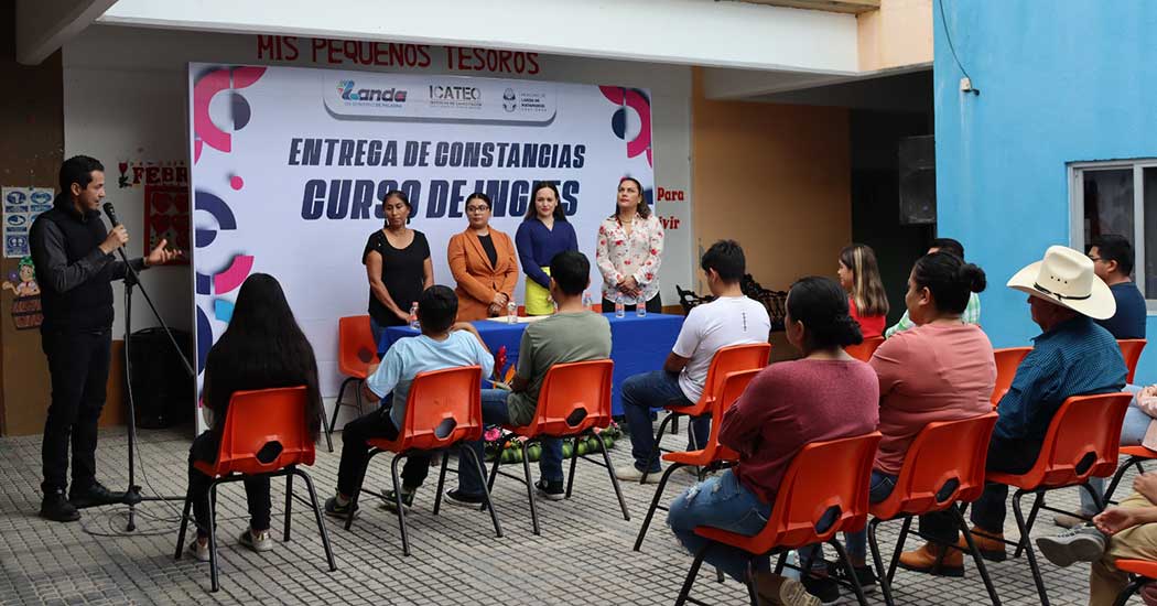 El grupo del curso de inglรฉs impartido por el Instituto de Capacitaciรณn para el Trabajo del Estado de Querรฉtaro (ICATEQ) y el Gobierno Municipal de Landa terminรณ exitosamente su primer nivel de capacitaciรณn y recibieron su constancia de parte de las autoridades.