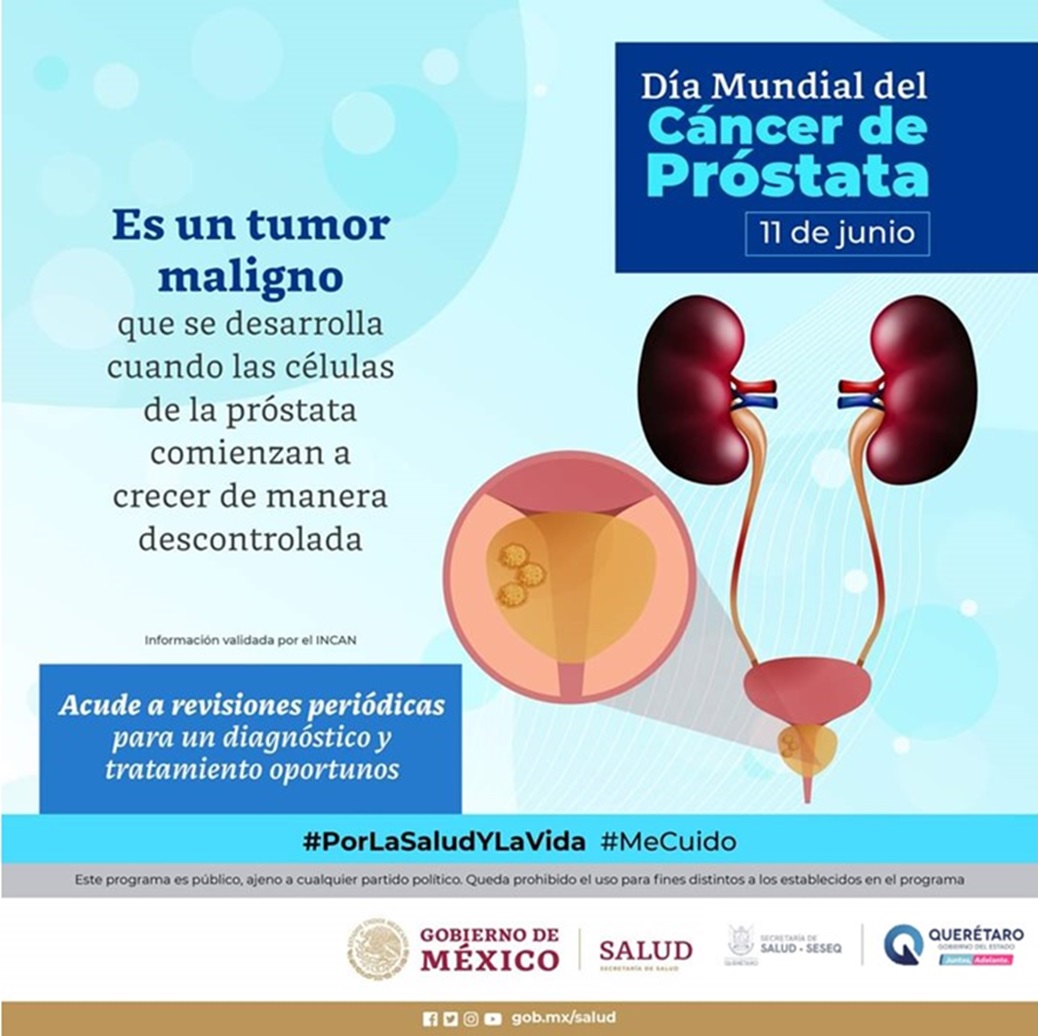 La Secretaría de Salud (SESA) del estado de Querétaro se une a la conmemoración del Día Mundial del Cáncer de Próstata cada 11 de junio, con el propósito de sensibilizar y concienciar a la población masculina, acerca de la importancia del diagnóstico temprano y tratamiento oportuno