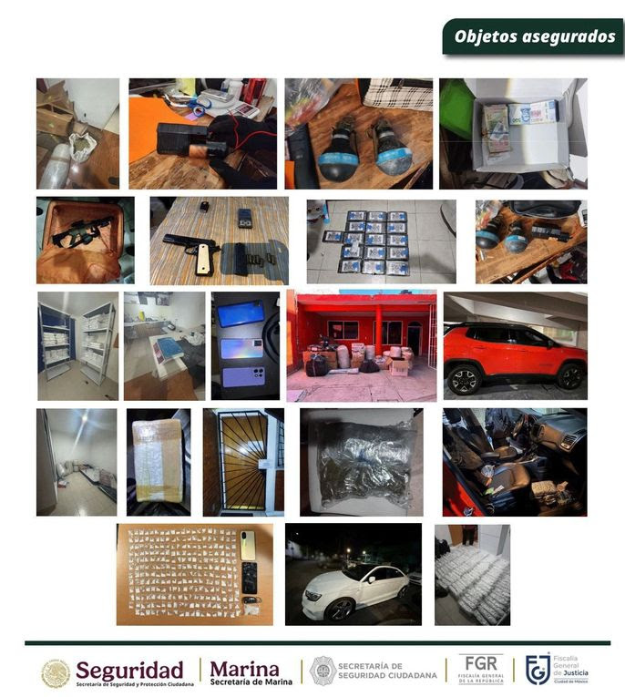 Tras la recopilación de pruebas mediante vigilancia, recorridos y entrevistas ciudadanas, un juez autorizó las órdenes de cateo. En los operativos, realizados en colonias como Ex Hacienda Coapa, Militar Marte y San Andrés Tetepilco, se aseguraron: