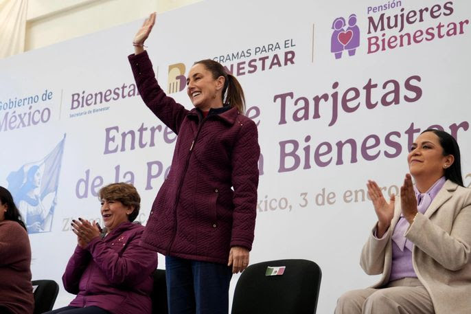 La presidenta de México, Claudia Sheinbaum Pardo, encabezó la entrega de 1,672 tarjetas del Banco del Bienestar en los municipios de Zinacantepec y Tejupilco, Estado de México. En Zinacantepec, se distribuyeron 947 tarjetas a beneficiarias de 63 y 64 años del programa Pensión Mujeres Bienestar, mientras que en Tejupilco, se entregaron 725 tarjetas, incluyendo adultos mayores de 65 años que se integraron a la Pensión para el Bienestar de las Personas Adultas Mayores.
