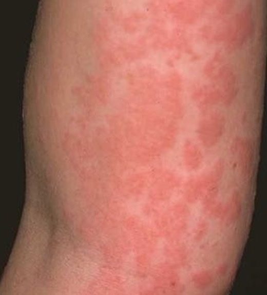 Una alergia por una picadura de insecto puede ocasionar: una zona de una gran hinchazón (edema) en el lugar de la picadura, picazón o urticaria en todo el cuerpo; tos, opresión en el pecho, sibilancia o falta de aire, e incluso anafilaxia. En una alergia a un medicamento se puede presentar: urticaria, picazón en la piel, erupción cutánea, hinchazón en la cara, sibilancia, anafilaxia.