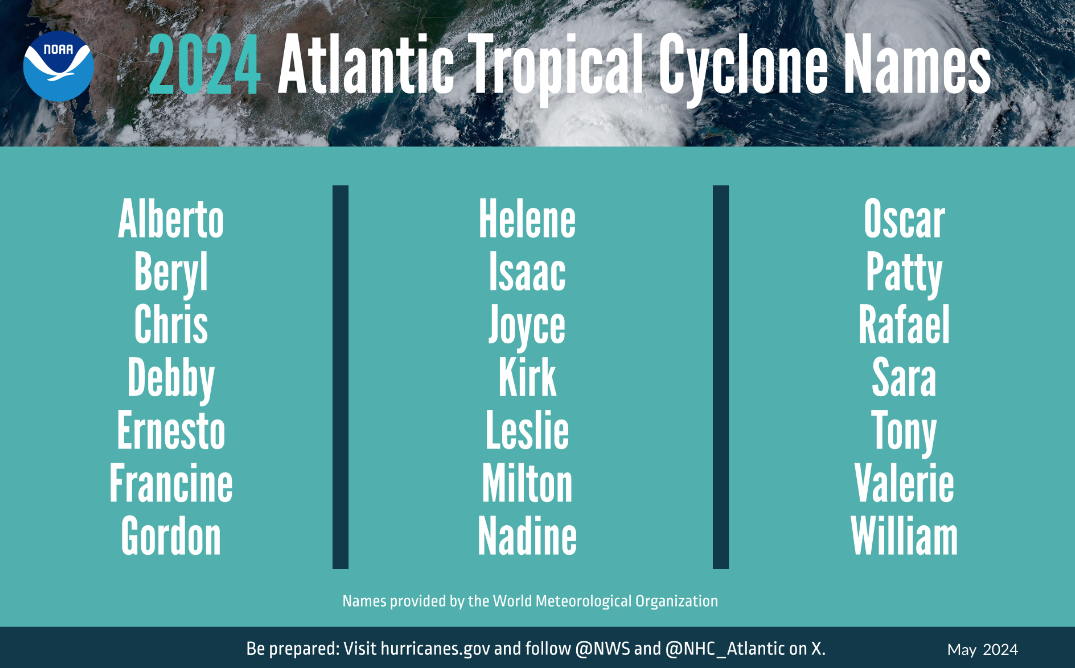La Administración Nacional Oceánica y Atmosférica (NOAA) pronostica entre 17 y 25 tormentas con nombre, que se producen cuando la velocidad del viento alcanza 39 millas por hora (62,75 kilómetros por hora) o más. De estas tormentas, se espera que entre 8 y 13 se conviertan en huracanes con vientos de 74 mph (119 km/h) o más, y de cuatro a siete de estos huracanes podrían ser de gran intensidad, con vientos superiores a 111 mph (178,64 km/h). La NOAA señala que hay un 70% de confianza en estos rangos.