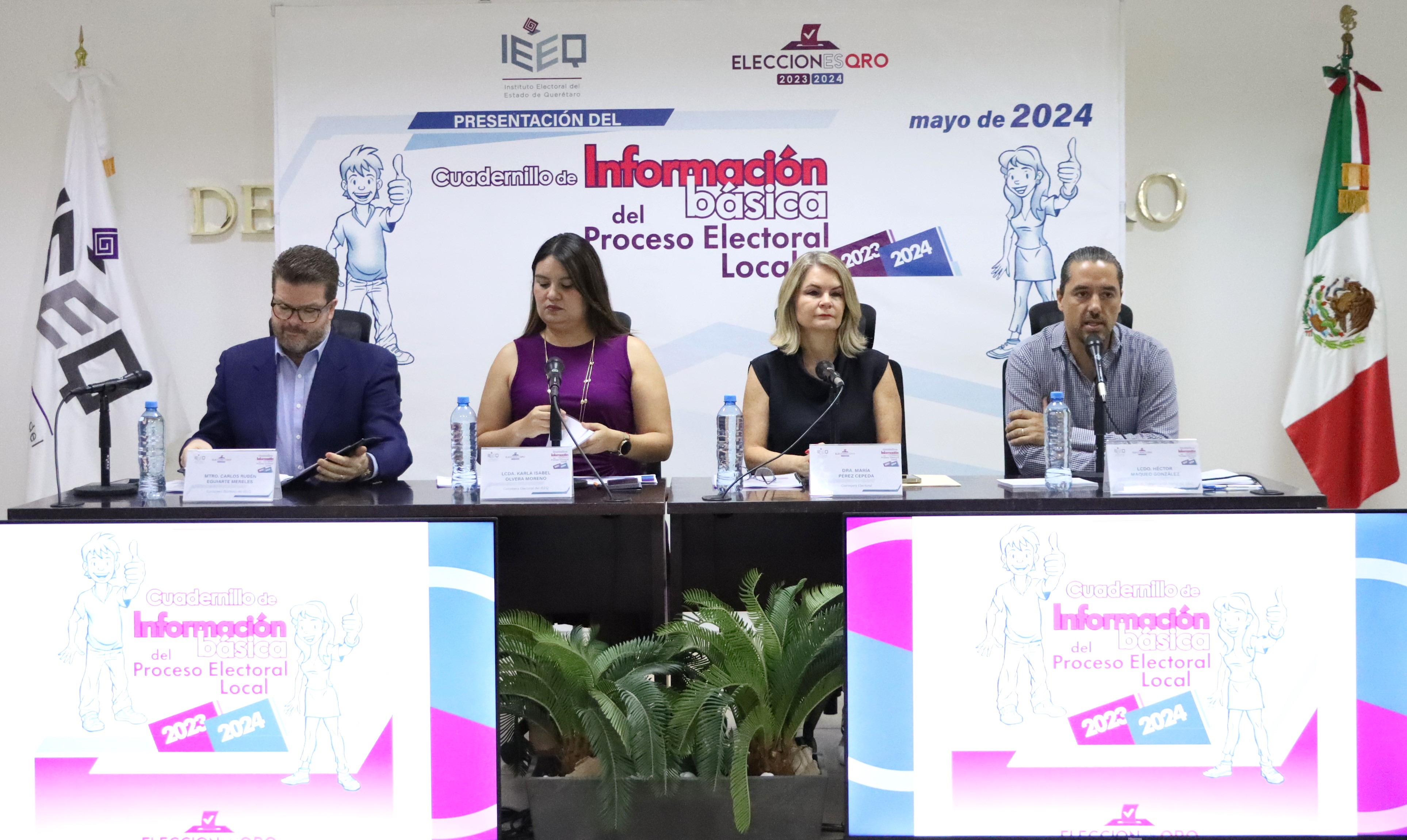 El Instituto Electoral del Estado de Querétaro (IEEQ), a través de la Comisión de Educación Cívica y Participación, presentó el Cuadernillo de Información Básica del Proceso Electoral Local 2023-2024 en una conferencia de prensa.