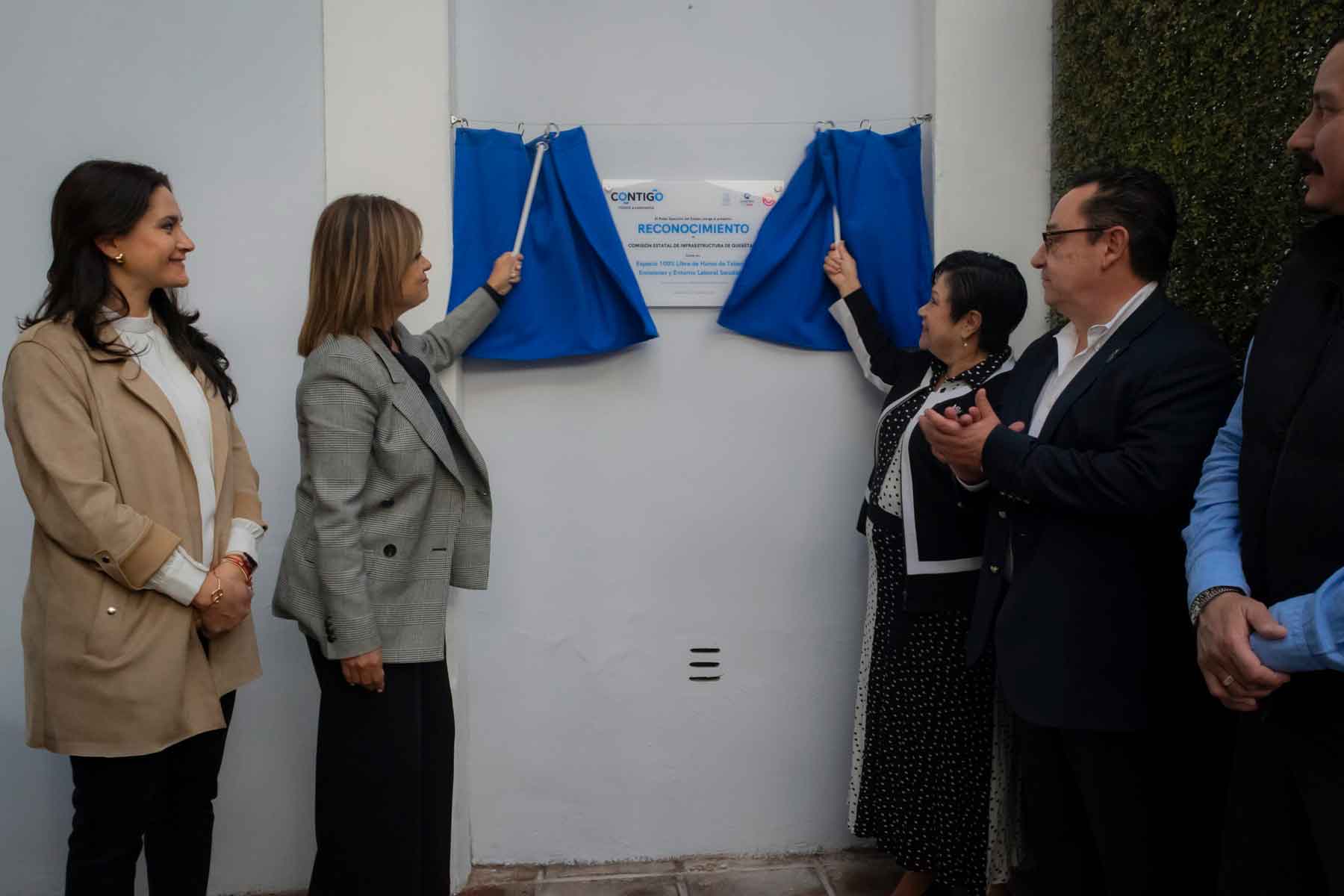 La titular de la Secretaría de Salud (SESA) del estado de Querétaro, Martina Pérez Rendón, encabezó la ceremonia de develación de placa que acredita la Certificación del edificiode la Comisión Estatal de Infraestructura como Entorno Laboral Saludable y Edificio 100% Libre de Humo de Tabaco.