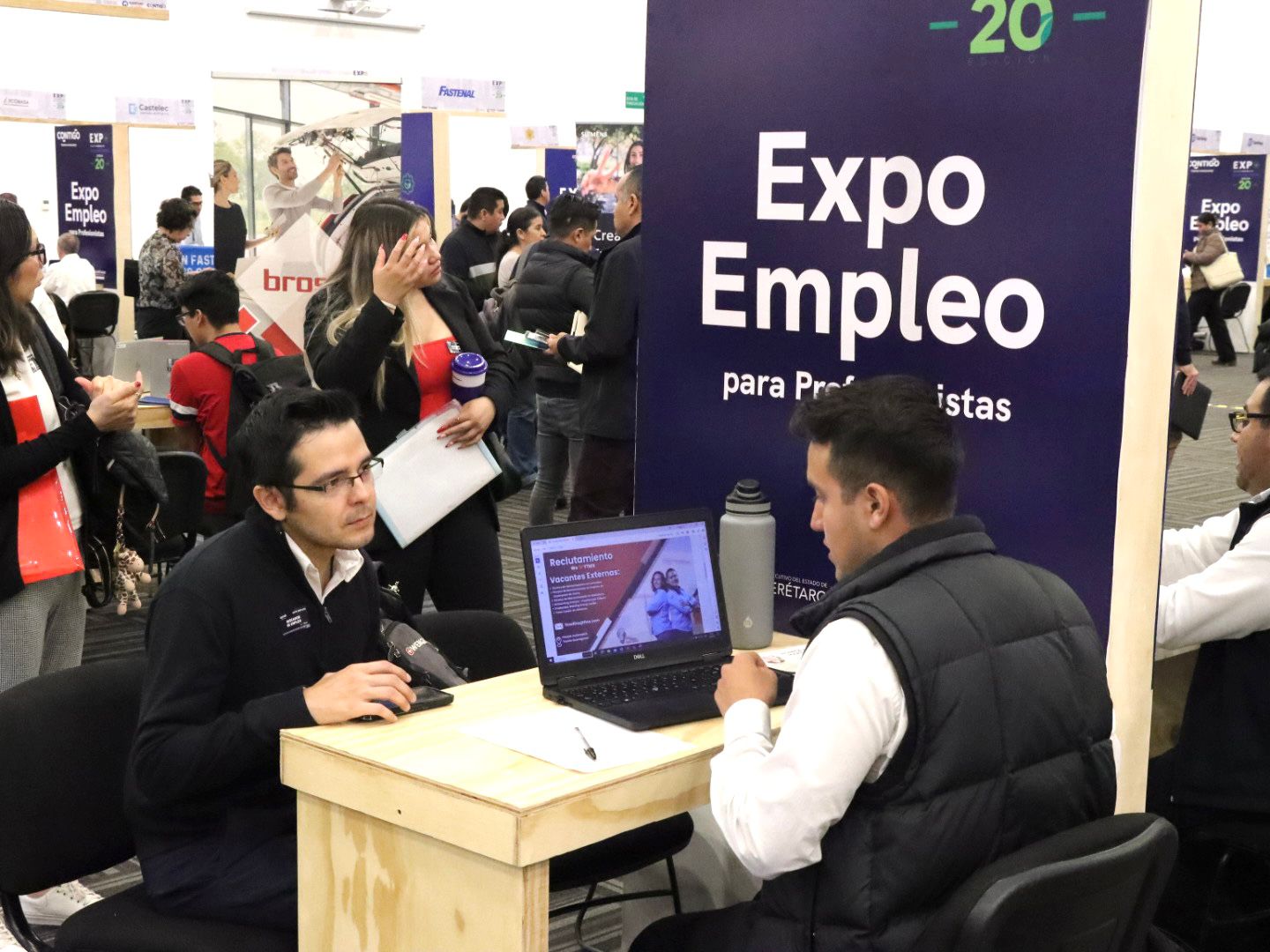La Secretaría del Trabajo (ST) y 50 empresas de los sectores industrial y de servicios, ofertaron 850 plazas vacantes en la Expo Empleo para Profesionistas, espacio de vinculación laboral dirigido de manera especial a personas con formación técnica superior universitaria y licenciatura, esto dentro de la Expo Encuentro Industrial y Comercial Querétaro 2024.