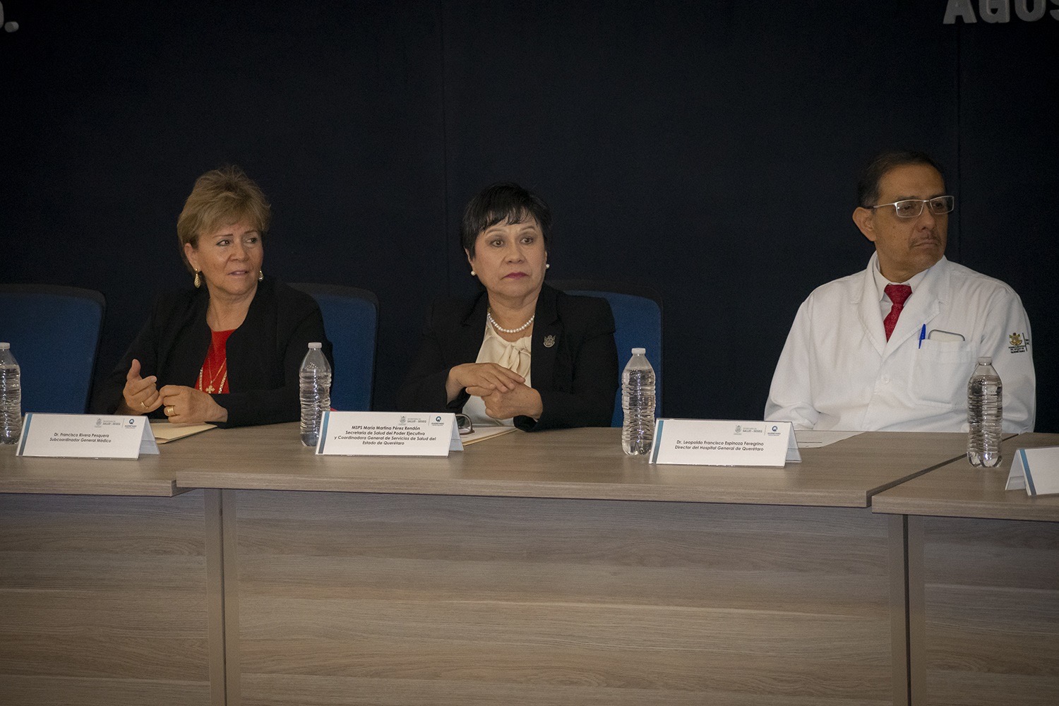 La secretaria de Salud (SESA) del estado, María Martina Pérez Rendón presidió la ceremonia de entrega de constancias y presentación de resultados del Programa Integral para el Bienestar Socioemocional de los Profesionales de la Salud (PIBSE Salud) en el auditorio del Hospital General de Querétaro.