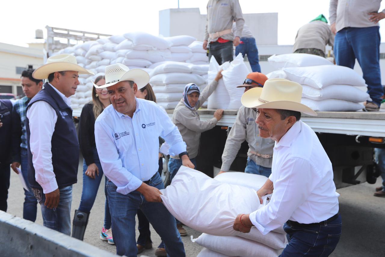 El secretario de Desarrollo Agropecuario, Rosendo Anaya, encabezó la entrega de más de 38 toneladas de avena, con un valor de un millón de pesos, para Ezequiel Montes y Cadereyta, como apoyo a 208 productores de ambos municipios, en beneficio de 132 y 251 hectáreas respectivamente.