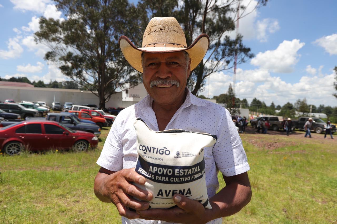 El secretario de Desarrollo Agropecuario, Rosendo Anaya, abanderó la entrega de 157 toneladas de avena y casi una tonelada de garbanzo para los municipios de Amealco de Bonfil y Huimilpan, como apoyo emergente a mil 29 y 127 productores, respectivamente, en beneficio de mil 408 hectáreas