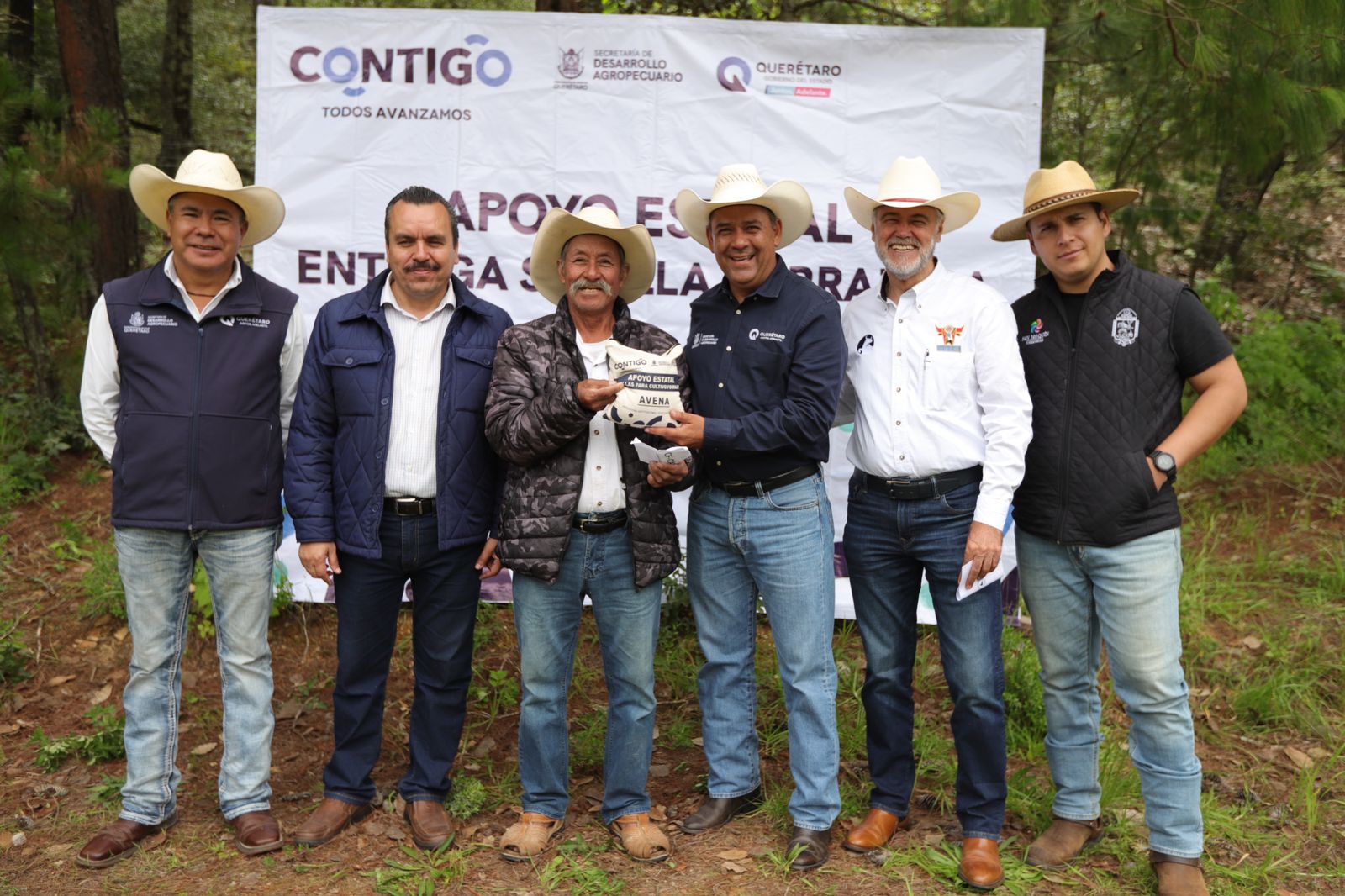 El secretario de Desarrollo Agropecuario, Rosendo Anaya, encabezó la entrega de casi 20 de toneladas de avena, como apoyo emergente a 121 productores de los municipios de San Joaquín, Peñamiller y Tolimán.