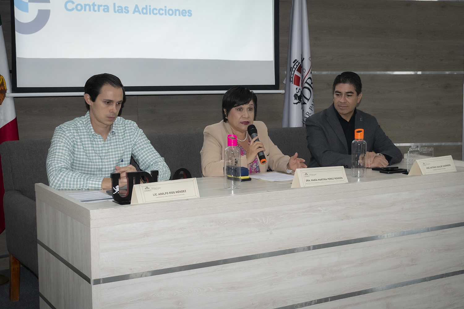 En el marco del Día Internacional de la Lucha contra el Uso Indebido y el Tráfico Ilícito de Drogas, que se conmemora cada 26 de junio, la titular de la Secretaría de Salud (SESA) del estado de Querétaro, María Martina Pérez Rendón, encabezó la ceremonia de inauguración del Foro: “La Importancia de la Prevención de Adicciones y Cuidado de la Salud Mental”, en la Sala Magna de la Universidad de Londres.