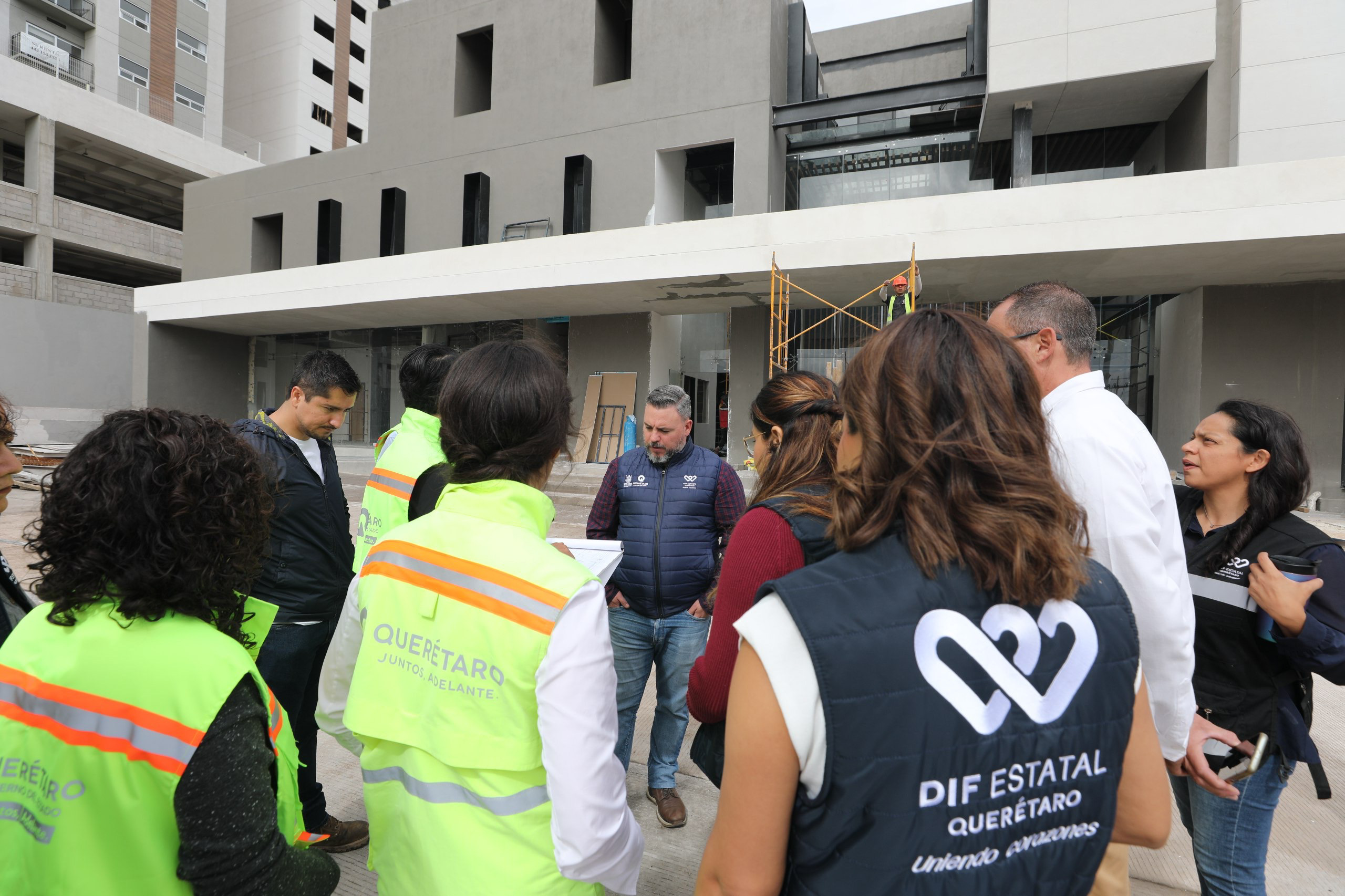 El director Administrativo del Sistema Estatal DIF (SEDIF), Francisco Cubillas García, en compañía del director de Proyectos y Construcción de Equipamientos de la Secretaría de Desarrollo Urbano y Obras Públicas (SDUOP), Alfonso Coronel Olivo, realizaron un recorrido de supervisión por los nuevos albergues asistenciales que se están construyendo a un costado del Hospital de Especialidades del Niño y la Mujer.