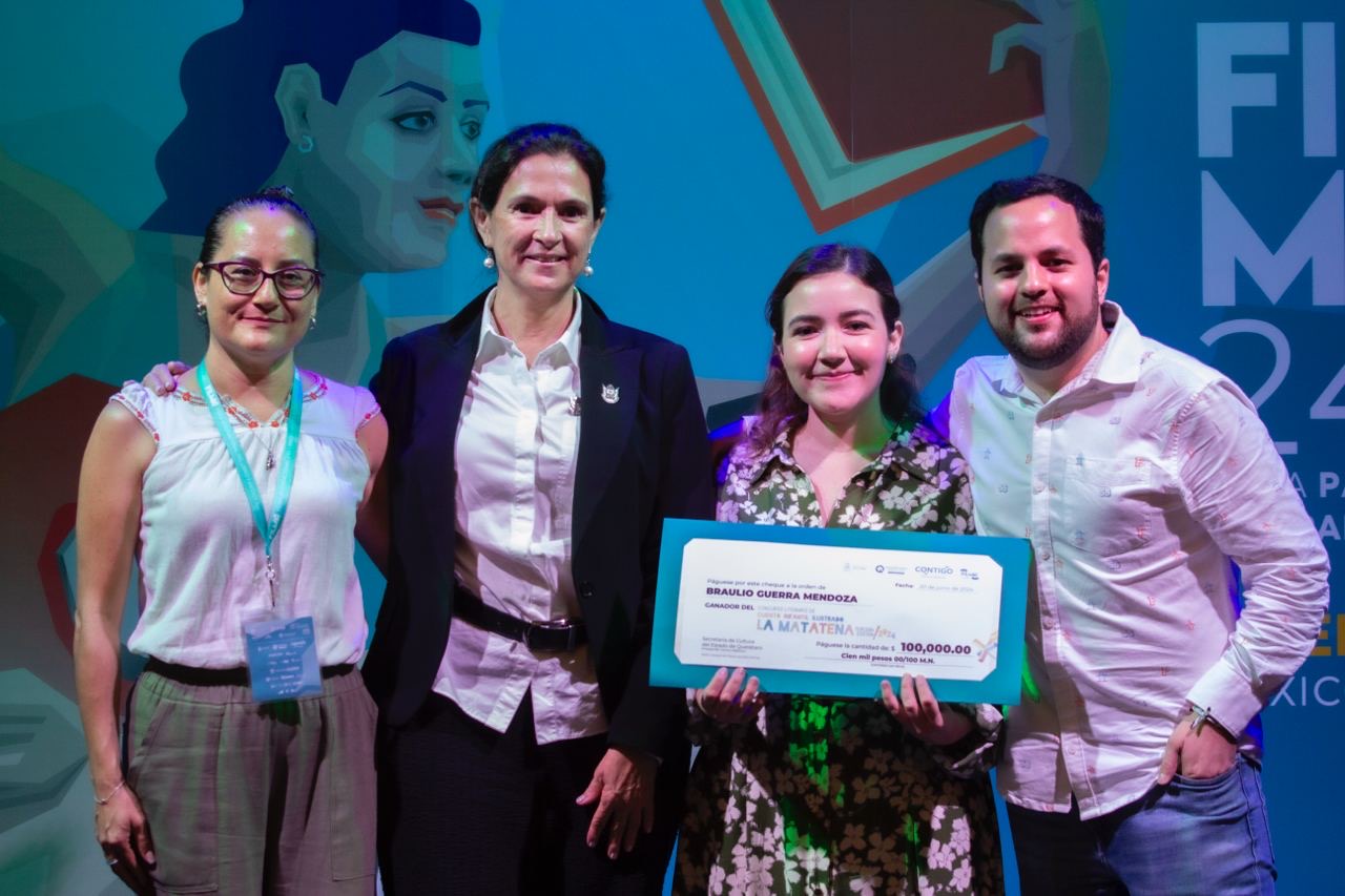 En el marco de la segunda edición de la Feria Internacional del Libro y Medios Audiovisuales (FILMAQ 2024), la Secretaría de Cultura entregó el premio al ganador del Concurso Literario de Cuento Infantil Ilustrado 2024 "La Matatena" al escritor Braulio Guerra Mendoza, por su obra titulada “¿A dónde fueron los cabellos de papá?”
