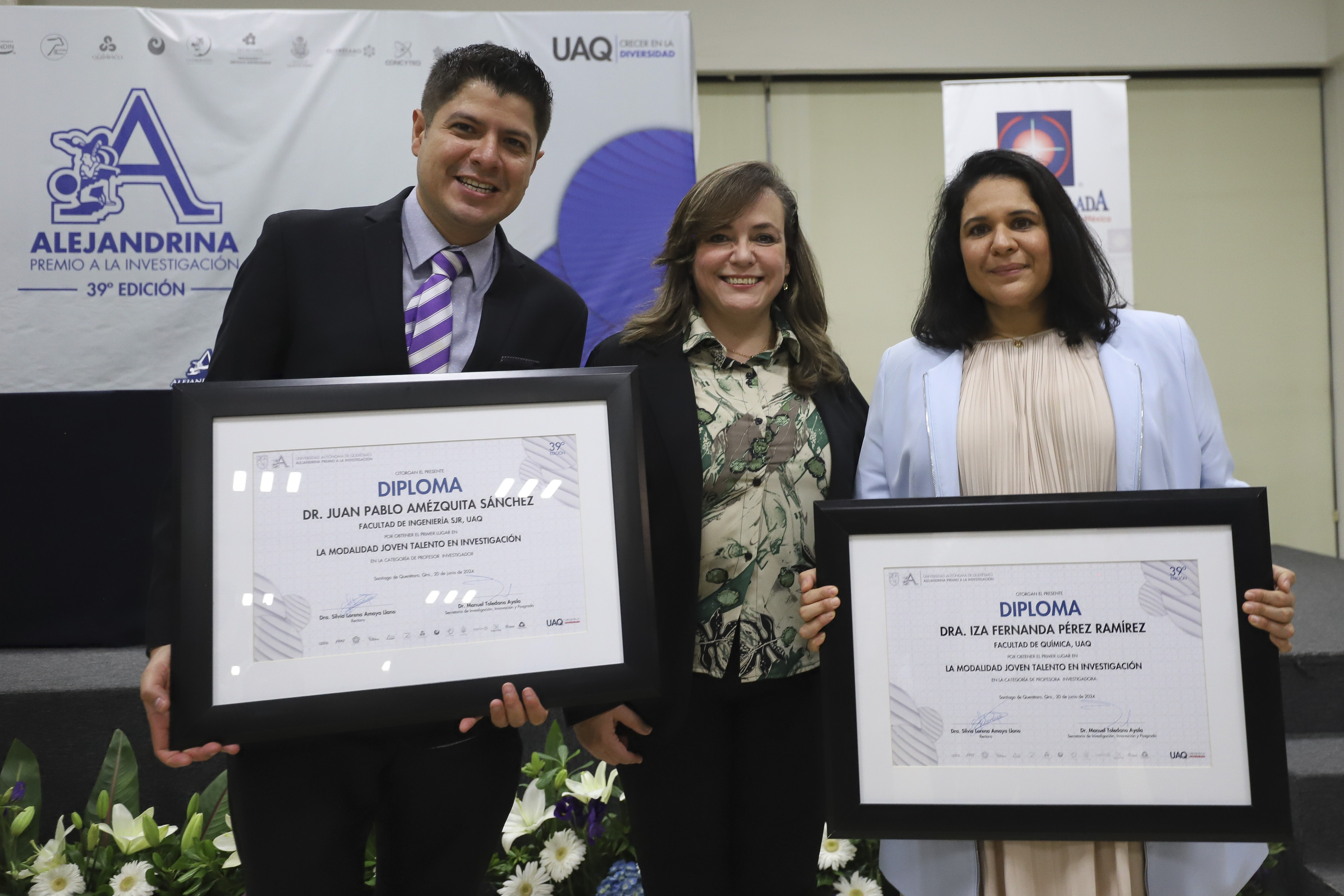 Gracias a sus logros destacaron: la Dra. Iza Fernanda Pérez Ramírez, de la Facultad de Química, y el Dr. Juan Pablo Amézquita Sánchez, de la Facultad de Ingeniería.
