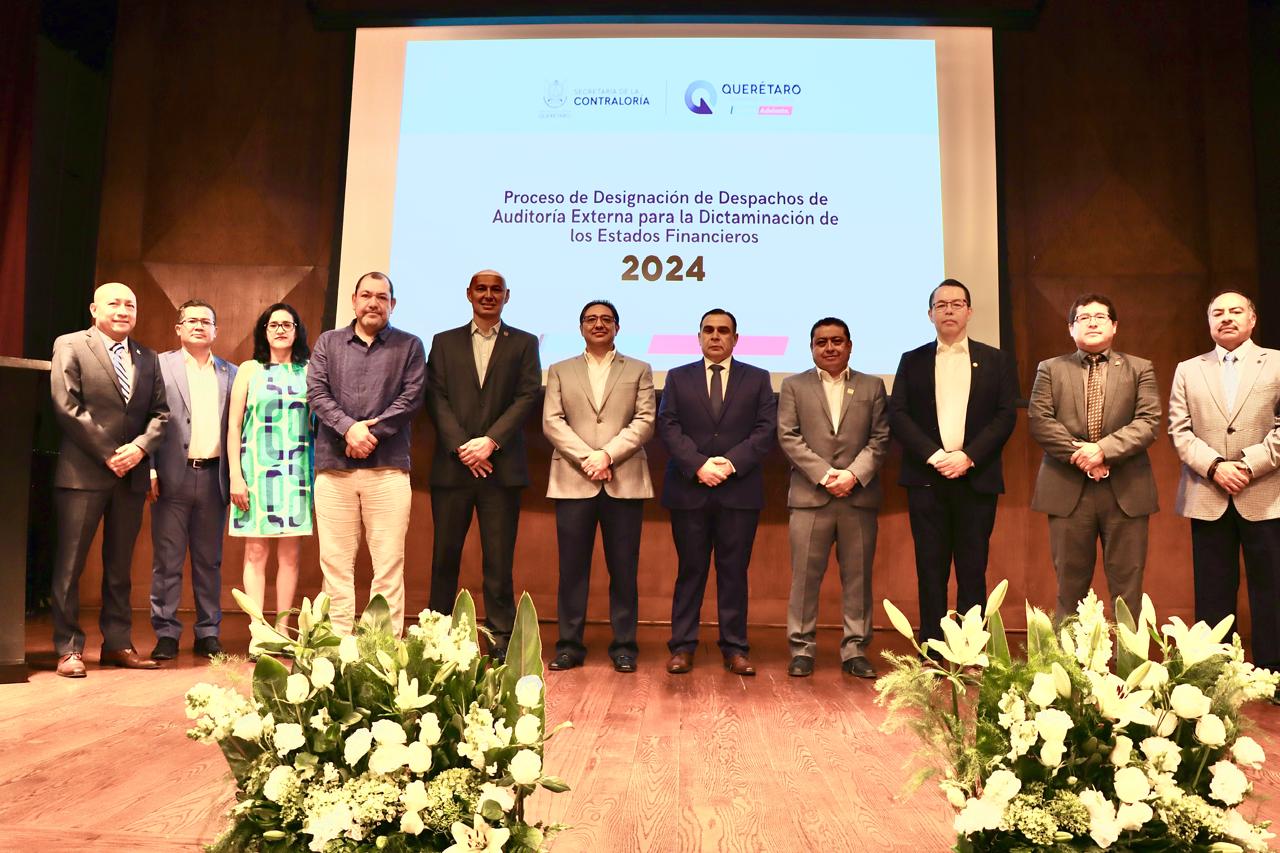 El secretario de la Contraloría del Poder Ejecutivo del Estado de Querétaro, Oscar García González, presidió el evento de presentación del proceso de inscripción para la Designación de Despachos de Auditoría Externa para la Dictaminación de los Estados Financieros 2024, al que asistieron profesionales de despachos contables locales; así como de Hidalgo, Estado de México, Morelos y Tlaxcala.
