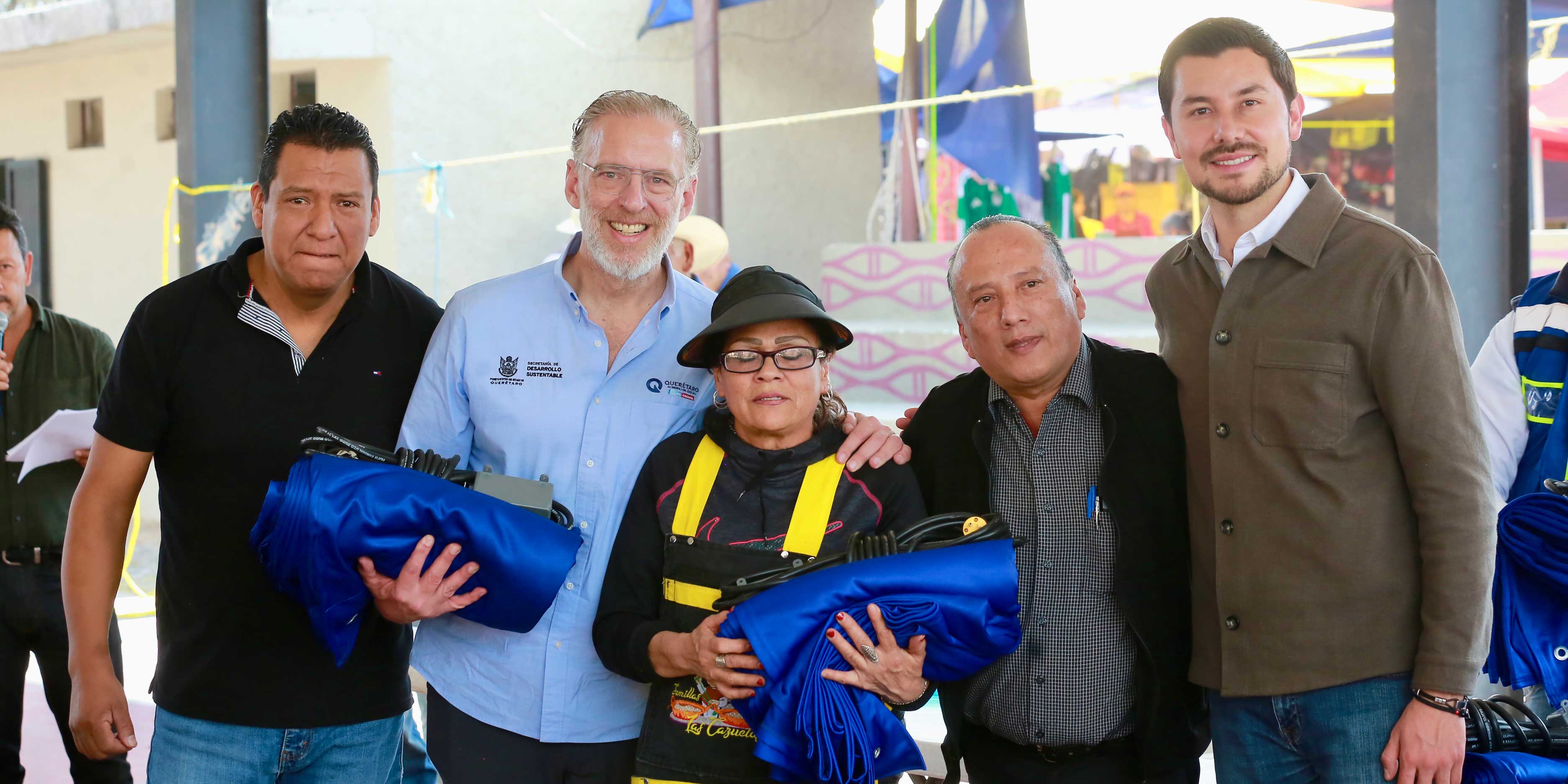 Para dignificar el comercio local, el titular de la SEDESU, Marco Del Prete, visitó el tianguis "Jade" en Tequisquiapan, donde encabezó la entrega de equipamiento a 100 comerciantes para que puedan ofrecer un mejor servicio y trabajar con mayor seguridad.