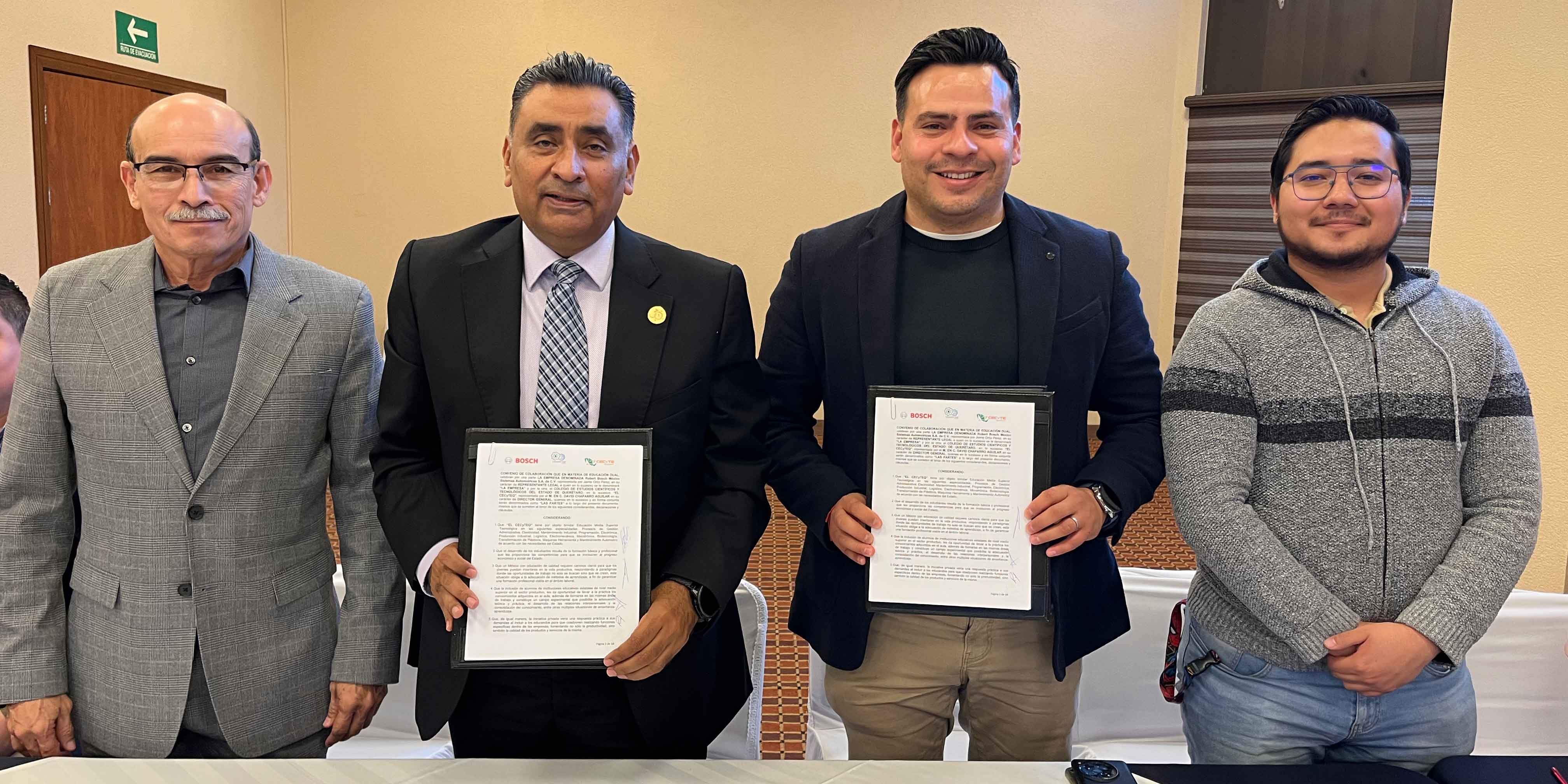 Con el objetivo de fortalecer la formación técnica y profesional de jóvenes estudiantes, el director general del Colegio de Estudios Científicos y Tecnológicos del Estado de Querétaro (CECyTEQ), David Chaparro Aguilar, y el gerente de Recursos Humanos de Robert Bosch México Sistemas Automotrices S.A. de C.V., Jaime Ortiz Pérez, firmaron un convenio de Educación Dual, lo que representa un paso trascendental para impulsar la vinculación educativa y empresarial, creando nuevas oportunidades para el desarrollo del talento joven.