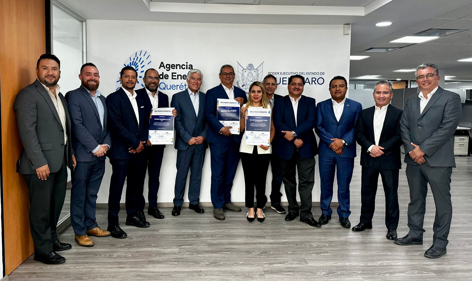 El director de la Agencia de Energía del estado de Querétaro, Mauricio Reyes, encabezó la entrega del reconocimiento “Empresa Confiable para servicios especializados en el cumplimiento del Código de Red”, por las acciones impulsadas por las firmas ROMHER, PAFRA, y CIE en materia de normas y requisitos técnicos que regulan la operación y el funcionamiento de los sistemas eléctricos.