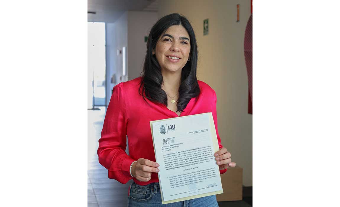 Santiago de Querétaro, Qro., 4 de marzo de 2026.- La diputada Juliana Rosario Hernández Quintanar, integrante del Grupo Legislativo del Partido Acción Nacional en la LXI Legislatura, presentó ante representantes de los medios de comunicación, la Iniciativa de Acuerdo por el que la Sexagésima Primera Legislatura del Estado de Querétaro exhorta al Titular del Poder Ejecutivo del Estado de Querétaro, para que se declare a la tradicional carrera de Las Cruces, Patrimonio Cultural Inmaterial e Intangible del Estado de Querétaro.