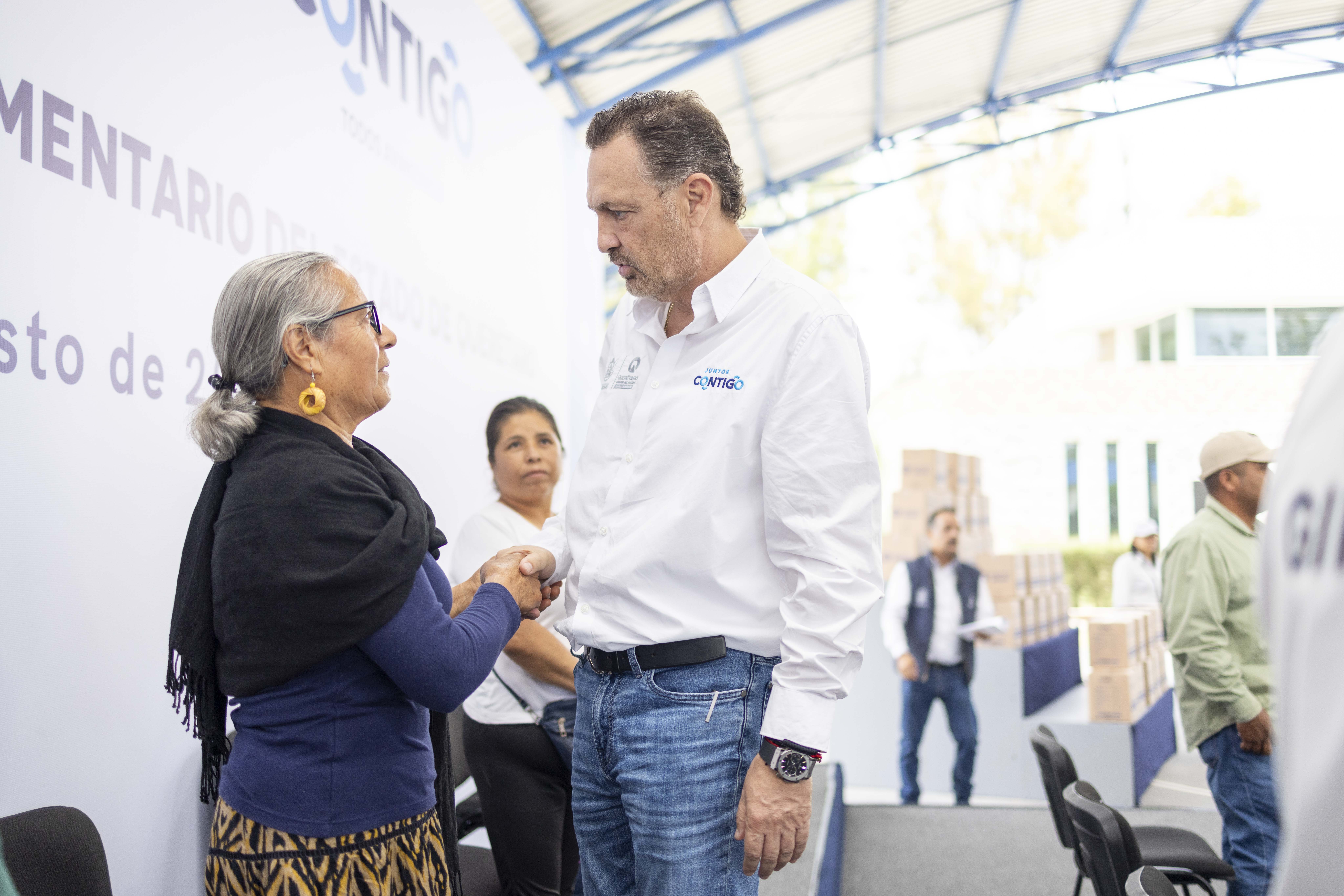 “La idea de este programa es poder asegurar que las personas, todos ustedes puedan tener acceso a una alimentación mucho más nutritiva, variada y suficiente y que puedan mejorar así su calidad de vida. Los felicitamos, el día de hoy van a recibir su paquete pero estaremos visitándolos también cada dos meses para que puedan recibir este apoyo y que ese es el compromiso que tenemos con todos ustedes”, subrayó.