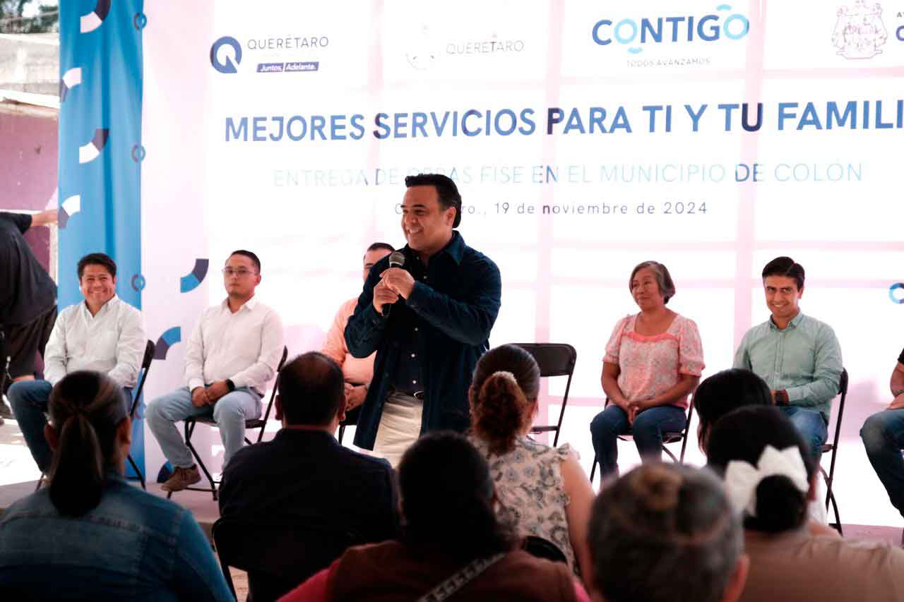 Fueron cinco obras las que el secretario entregó, acompañado del presidente municipal de Colón, Gaspar Trueba Moncada, tanto en la cabecera municipal como en las comunidades de Ajuchitlán, Galeras y La Peñuela; trabajos donde se invirtieron más de 8.7 millones de pesos en beneficio de casi mil 300 colonenses.