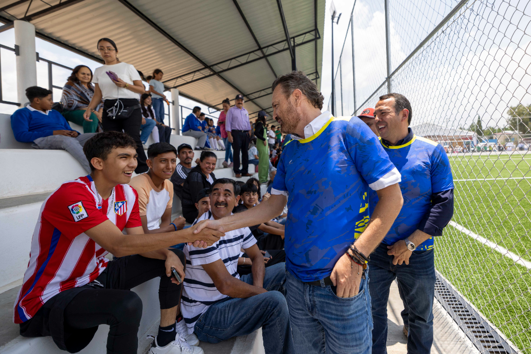 El gobernador, Mauricio Kuri González, y el vicepresidente de Relaciones con Gobierno de TC Energía, Rafael García, entregaron en la comunidad Ejido Cazadero, del municipio de San Juan del Río, una cancha de fútbol 7. Este espacio recreativo permitirá promover el deporte y fomentará distintos valores, como el respeto a las reglas del juego, la competencia, la disciplina, la constancia y el compañerismo.