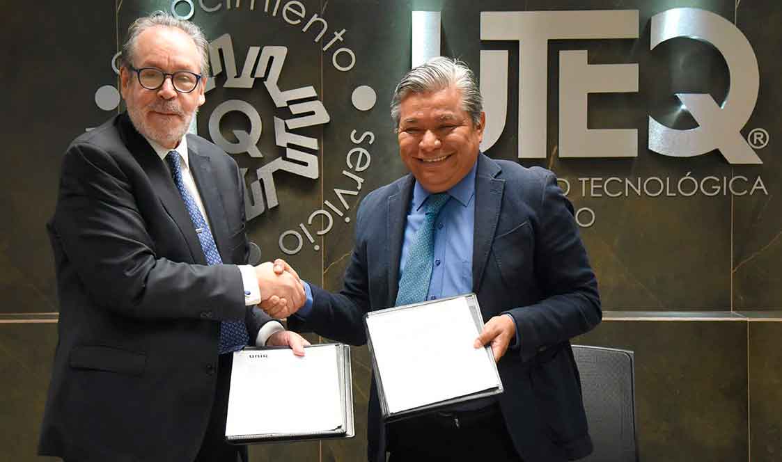 El rector de la Universidad Tecnológica de Querétaro (UTEQ), José Carlos Arredondo Velázquez, y el rector de la Universidad Internacional de La Rioja (UNIR) México, Francisco David Mejía Rodríguez, encabezaron la firma de convenio de colaboración PARA fortalecer el intercambio académico entre ambas instituciones, así como la promoción de programas educativos e investigación.