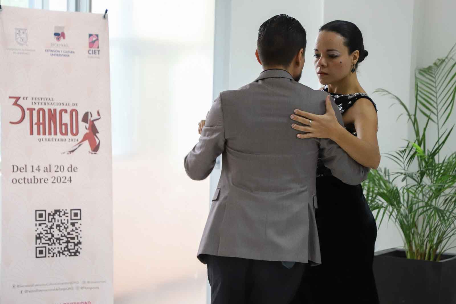 Querétaro, Qro., a 5 de octubre de 2024.- La Universidad Autónoma de Querétaro (UAQ) invita a toda la población al tercer Festival Internacional de Tango (FIT), que se llevará a cabo del 14 al 20 de octubre, organizado por la Secretaría de Extensión y Cultura Universitaria (SECU) y el Centro de Investigación en Estudios del Tango (CIET). Este evento cultural ofrecerá al público una semana de música, danza, talleres, clases magistrales y milongas, con el objetivo de acercar a la comunidad a la cultura del tango y fomentar su apreciación.