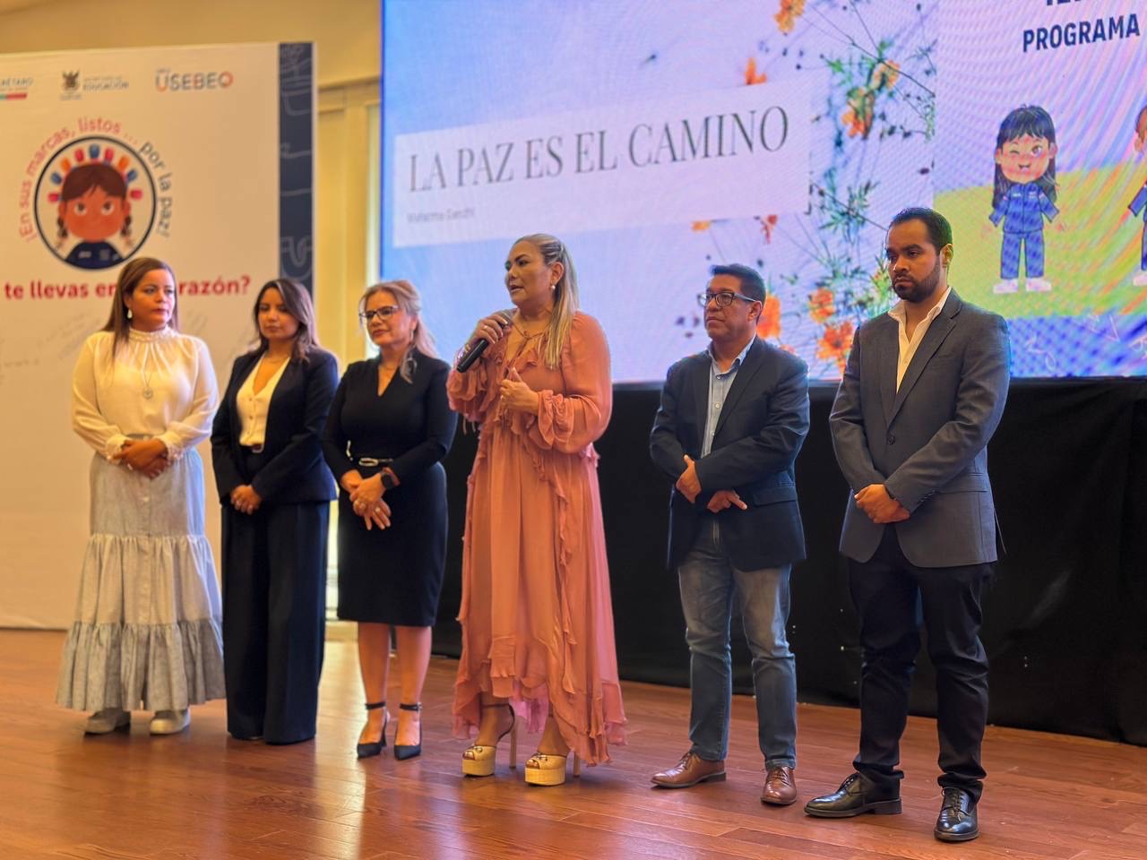 La titular de la USEBEQ, acompañada del líder de la sección 24 del Sindicato Nacional de Trabajadores de la Educación (SNTE), Francisco Ramírez Labra, aseguró que la paz es algo que tienes que sentir para comprender; bajo esta premisa, precisó que este programa es impulsado por el gobierno estatal a fin de generar espacios de convivencia armónica en las escuelas públicas, en donde los niños, niñas y adolescentes aprendan a apoyarse recíprocamente, reconociendo sus diferencias a través del diálogo, la conciliación y la búsqueda de acuerdos para desarrollar sus habilidades en la resolución de conflictos.