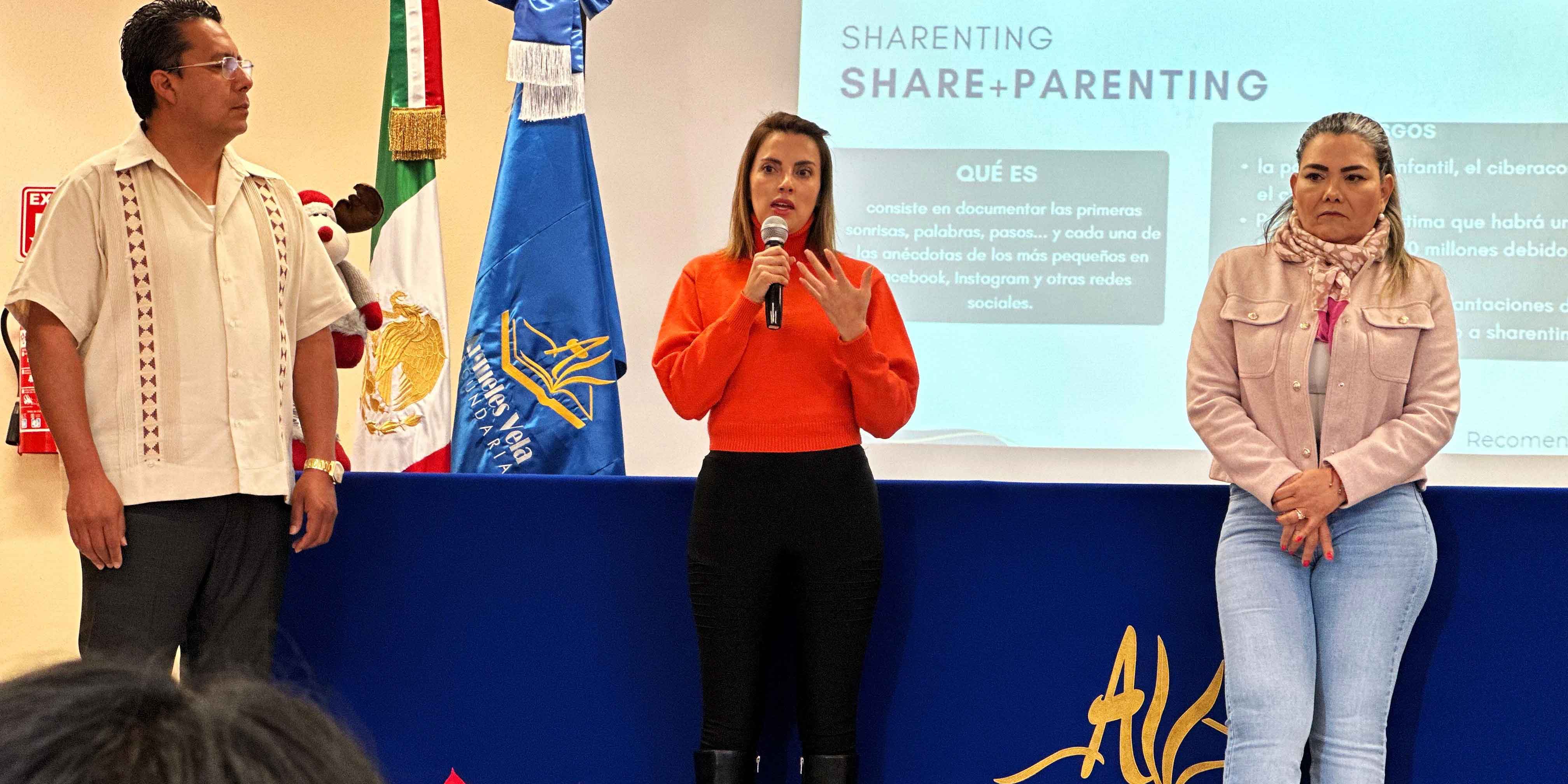 “Agradezco la presencia en esta secundaria de la coordinadora del gabinete estatal Laura Aguilar, así como también de la ex senadora de la República, Josefina Vázquez Mota, quien con un equipo de trabajo profesional se une al esfuerzo de la actual administración en Querétaro de sembrar en las y los adolescentes la semilla de la construcción de la paz, a través del uso y manejo responsable de las redes sociales y del civismo digital”, apuntó.