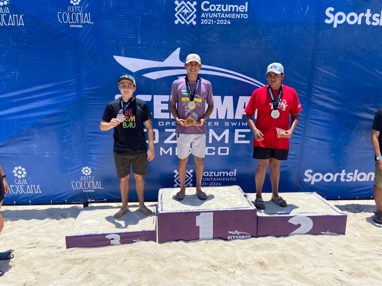 El queretano, Marco Antonio Meléndez Hernández, obtuvo el primer lugar en la distancia de 10 kilómetros de la competencia de aguas abiertas Oceanman México 2024, celebrada en Cozumel, con un tiempo de 2:28:43.9.