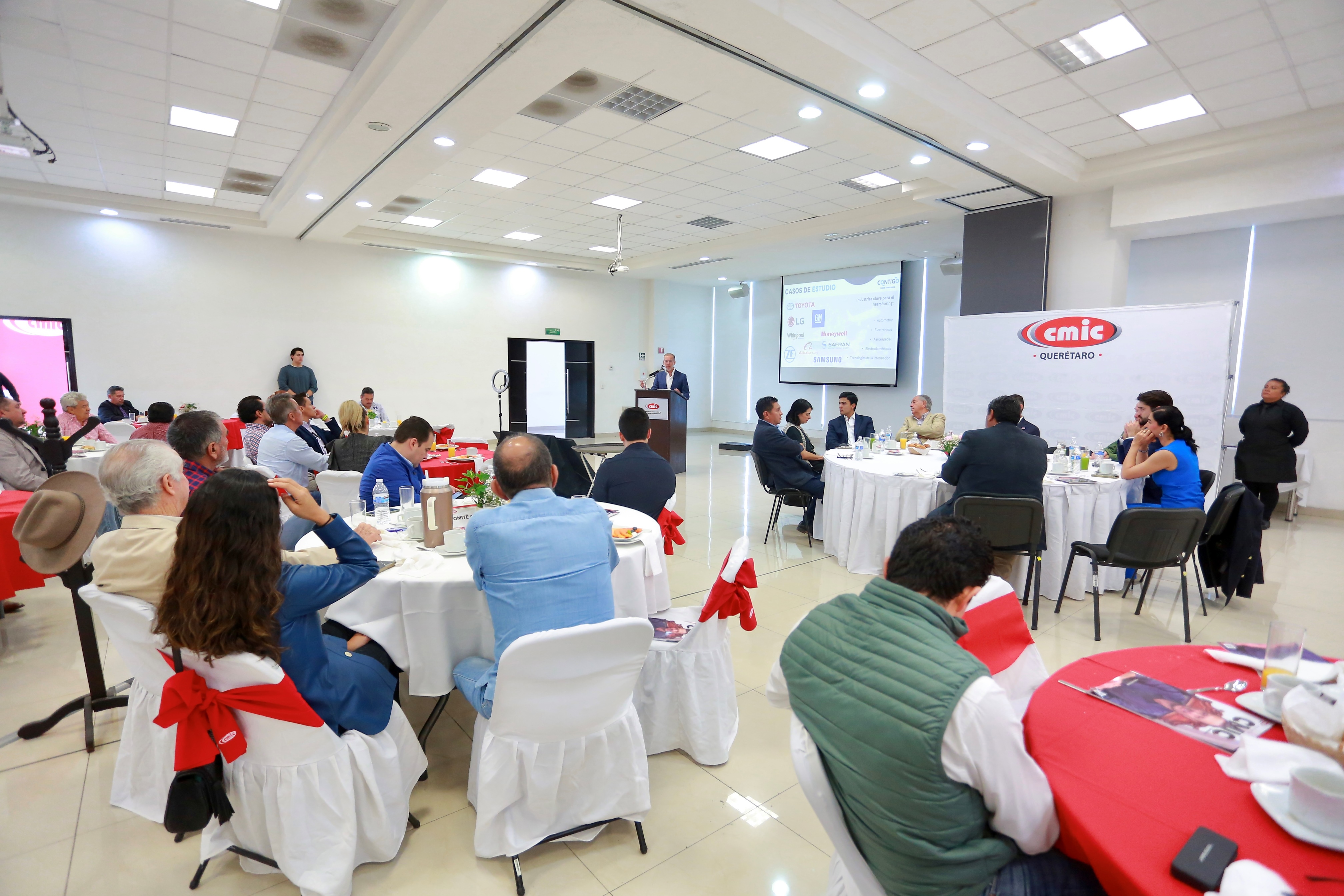 El titular de la Secretaría de Desarrollo Sustentable (SEDESU), Marco Antonio Del Prete Tercero, participó en el desayuno mensual de afiliados de la Cámara Mexicana de la Industria de la Construcción (CMIC), evento en el que dio a conocer las oportunidades que representa la relocalización para el crecimiento de los proveedores locales.