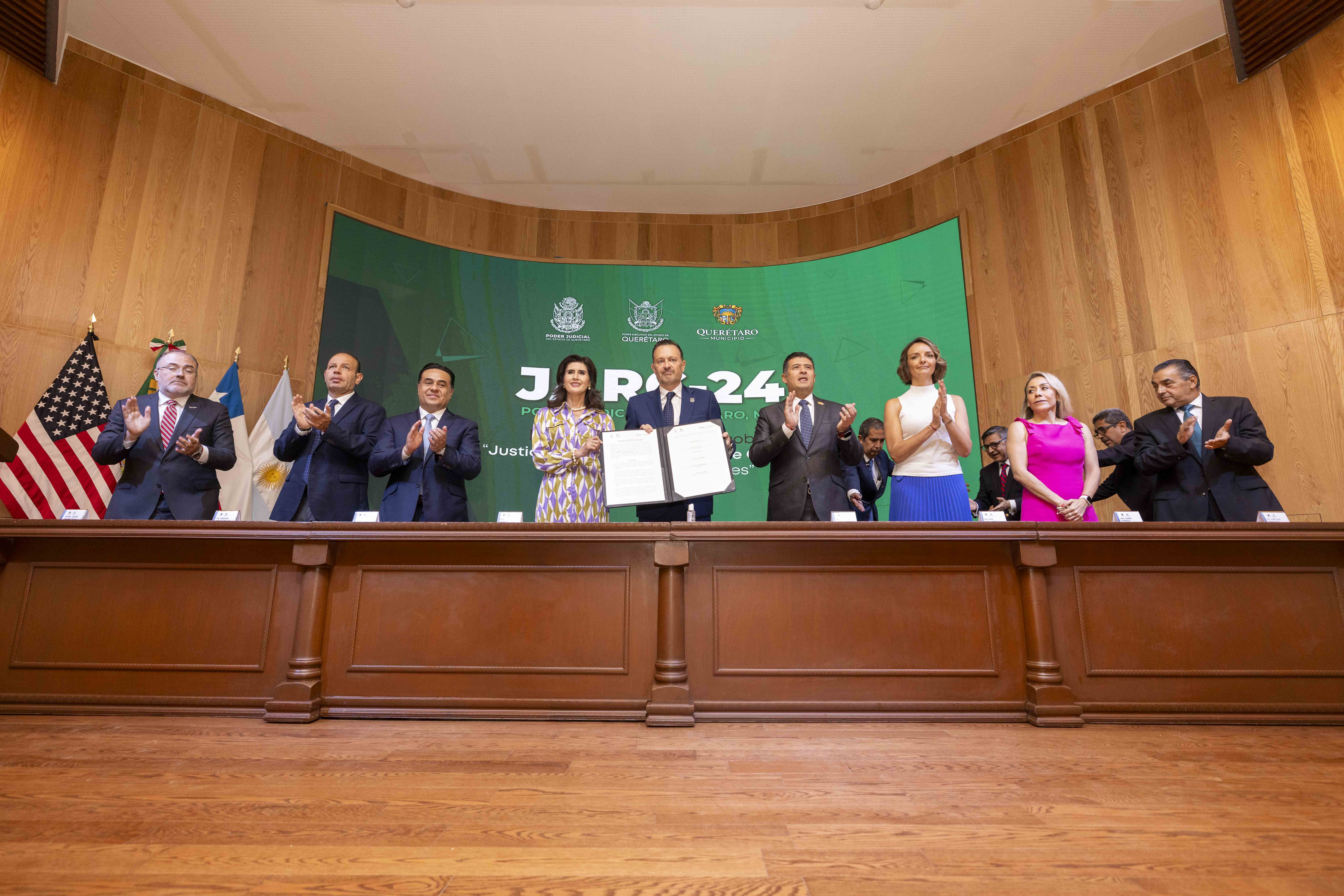 “Querétaro es cuna de nuestra Constitución y baluarte del Estado de Derecho en todo el país, se enorgullece de ser anfitrión de este gran Foro Internacional sobre Justicia Abierta y Rendición de Cuentas para los Poderes Judiciales. Gracias a ustedes, nuestra tierra, testigo de hechos que han dado rumbo a nuestro país, se convierte en el centro de la discusión sobre una justicia más abierta y accesible”, apuntó.