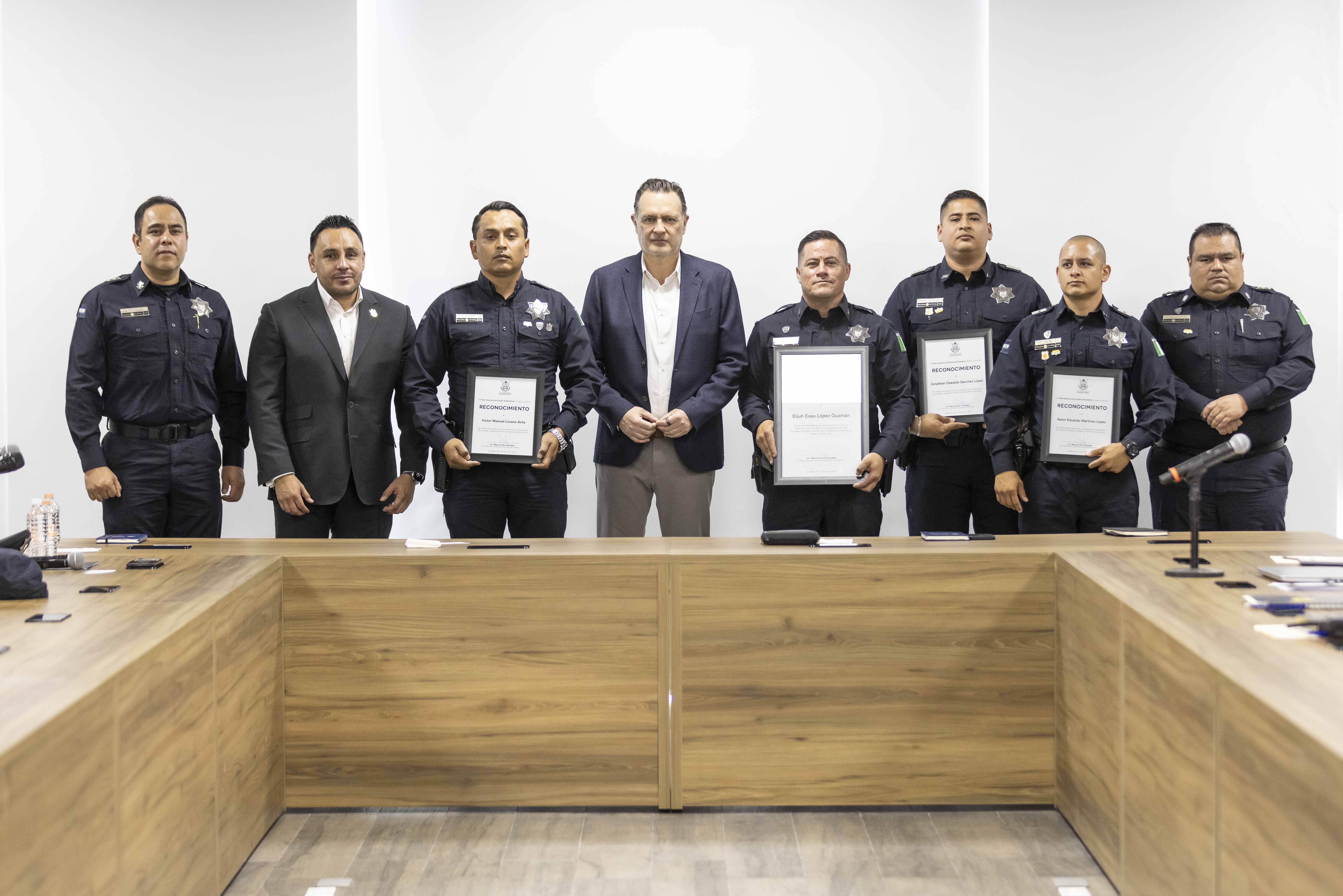 Durante este acto, realizado en las instalaciones de la Secretaría de Seguridad Ciudadana, se destacó el actuar de Víctor Manuel Lozano Ávila, Kevin Eduardo Martínez López y Jonathan Oswaldo Sánchez López, elementos de POES, quienes demostraron arrojo y valentía en el cumplimiento de su deber.