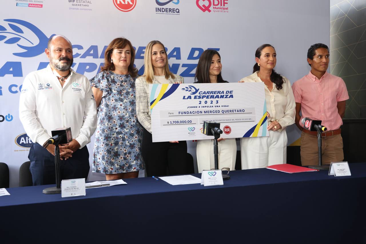 La presidenta del Patronato del Sistema Estatal DIF, Car Herrera de Kuri, participó en la presentación de la XIV edición de la Carrera de la Esperanza 2024, donde invitó a la población a formar parte del evento deportivo que se llevará a cabo el próximo domingo 8 de septiembre, y que beneficiará a cerca de 800 niñas y niños de 14 centros de Asistencia Social del estado de Querétaro.