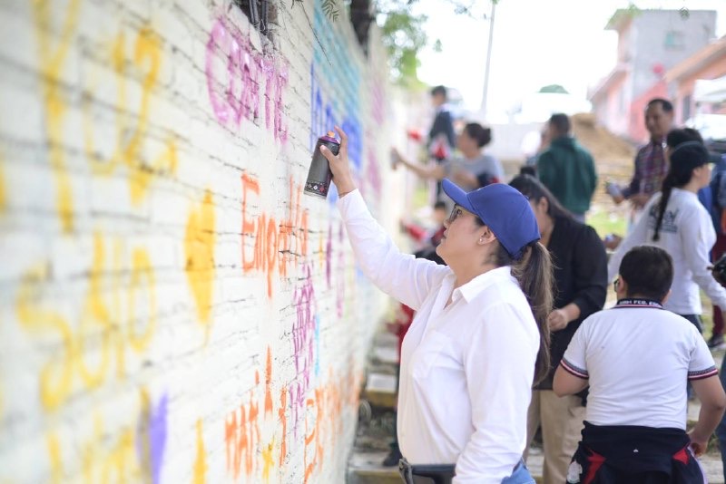 La secretaria de Desarrollo Social del Estado de Querétaro, Diana Yadira Pérez Mejía, realizó una visita al Muro del Diálogo e Identitario, ubicado en el andador Río Concá, en la colonia San Cayetano en el municipio de San Juan del Río; proyecto promovido por la SEDESOQ.