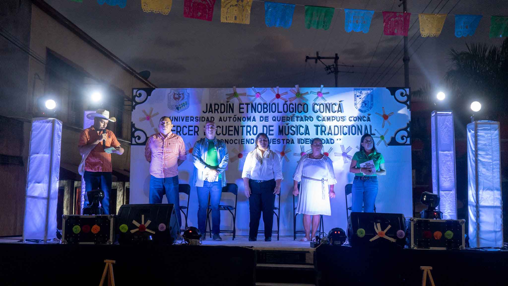 La Universidad Autónoma de Querétaro (UAQ), a través de su campus en Concá, celebró el tercer Encuentro de Música Tradicional “Reconociendo Nuestra Cultura” en Arroyo Seco, con la participación de autoridades universitarias y municipales, entre ellos el Dr. José Gómez Soto, director de la Facultad de Ciencias Naturales (FCN). Este evento, organizado con el apoyo del Jardín Etnobiológico del campus, tuvo como objetivo principal preservar la música y gastronomía de la Sierra Gorda.