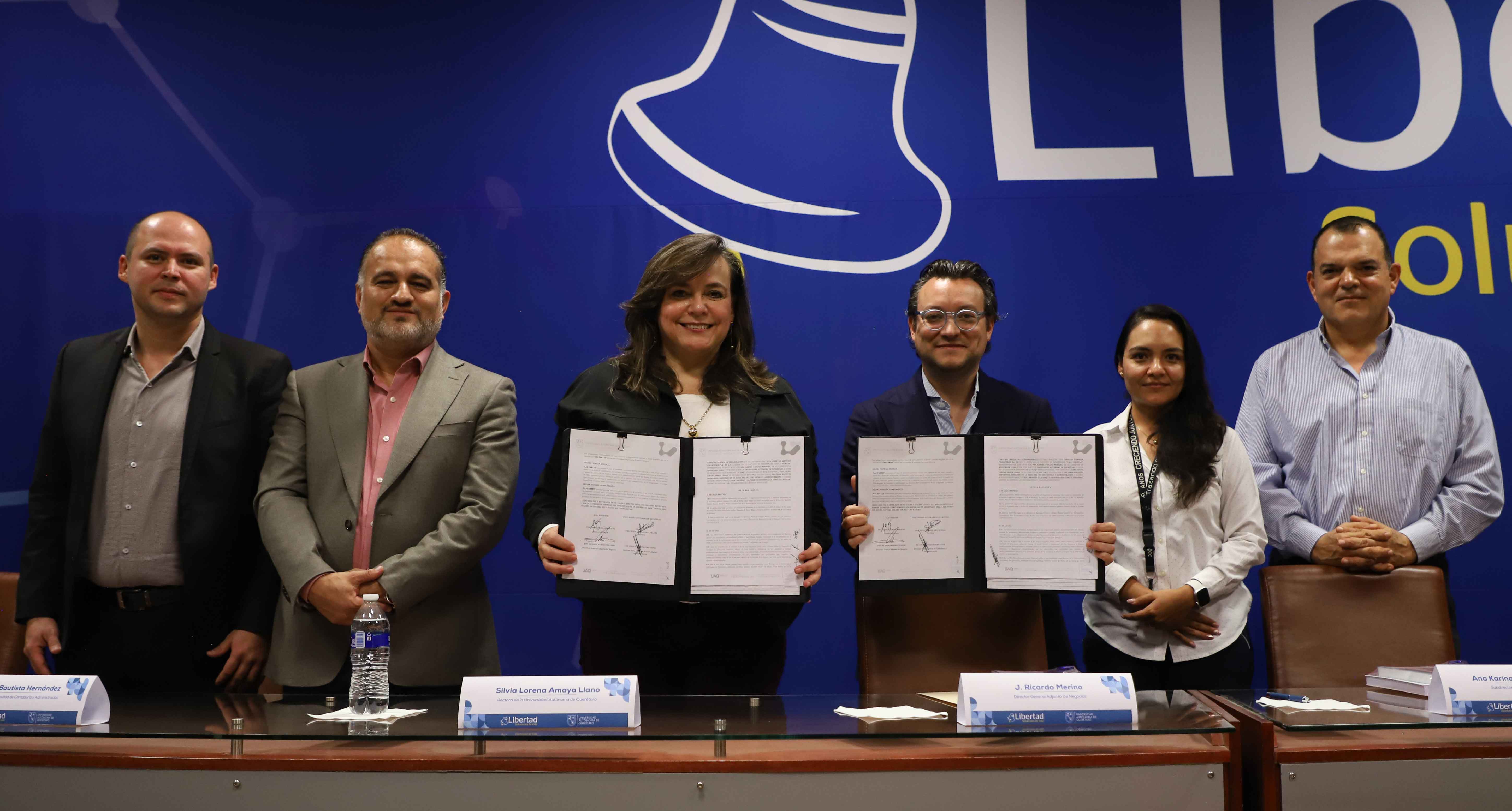 La Universidad Autónoma de Querétaro (UAQ) y Libertad Servicios Financieros han firmado un convenio de colaboración enfocado en fortalecer la formación integral de su comunidad. El acuerdo abarca cuatro ejes principales: educación continua, investigación, promoción de actividades, pasantías y posicionamiento laboral.