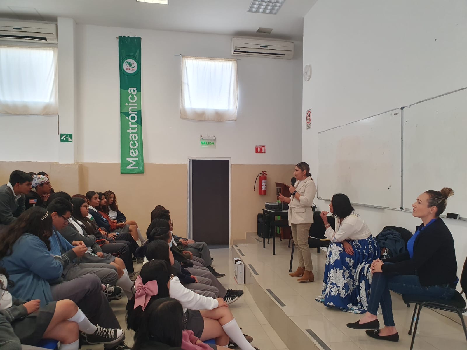 En el marco del Día Internacional de la Mujer y la Niña en la Ciencia, estudiantes de segundo y cuarto semestre de la carrera de Biotecnología recibieron la visita de las científicas especialistas en Neurobiología, Claudia Ibeth Pérez Díaz; Deisy Gasca Martínez y Lorena Gaytán quienes resaltaron el papel y el rol que juegan las mujeres en la ciencia y la tendencia en participación y empoderamiento de la mujer en materias STEM, (Science, Technology, Engineering y Mathematics), con la idea también de despertar y motivar las vocaciones científicas en las y los estudiantes del CECyTEQ.